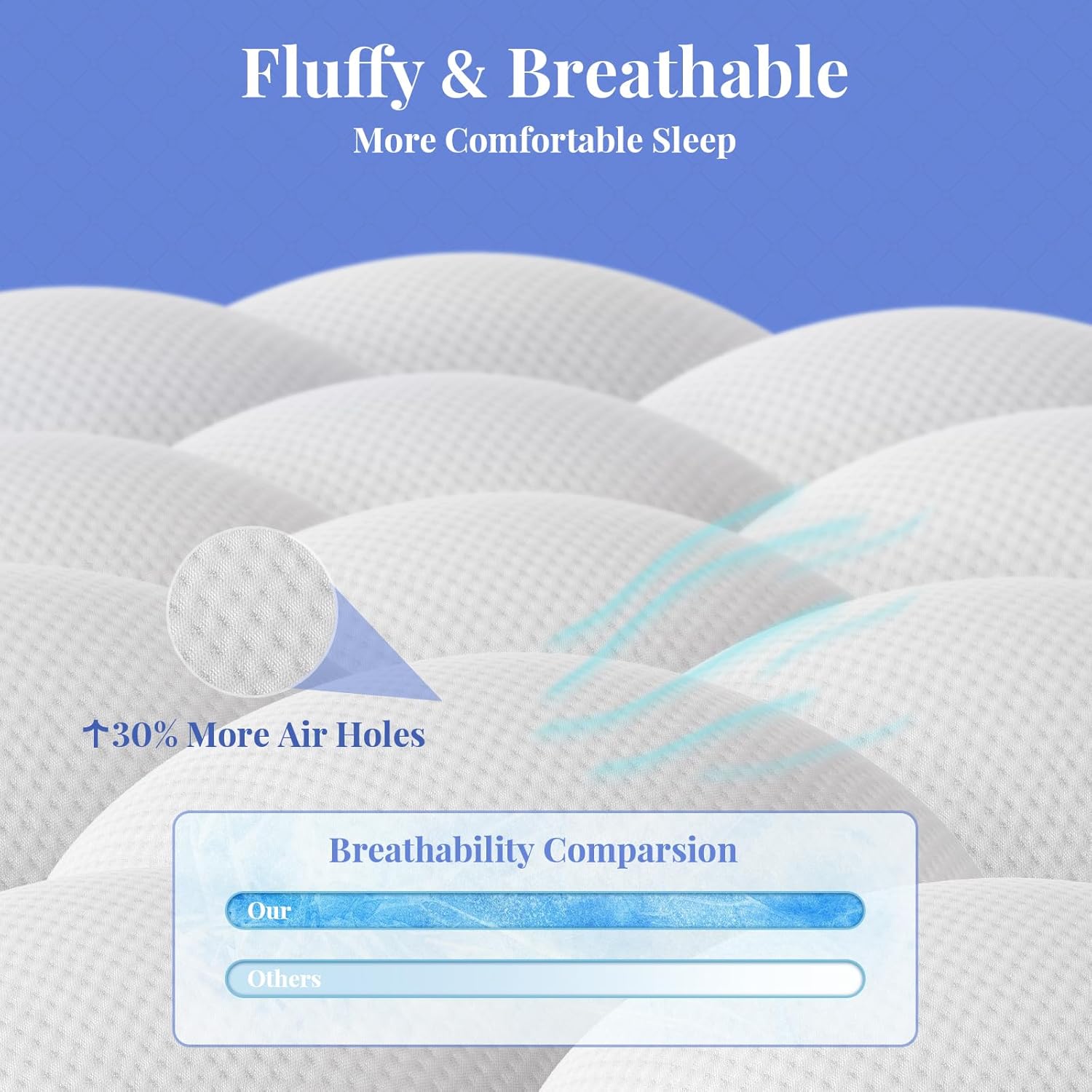 - Secure Fit for Various Mattress Heights: The elastic deep-pocket skirt fits mattresses up to 19" thick, keeping the topper firmly in place without shifting. Compatible with most mattress types, including memory foam, hybrid, innerspring, and more