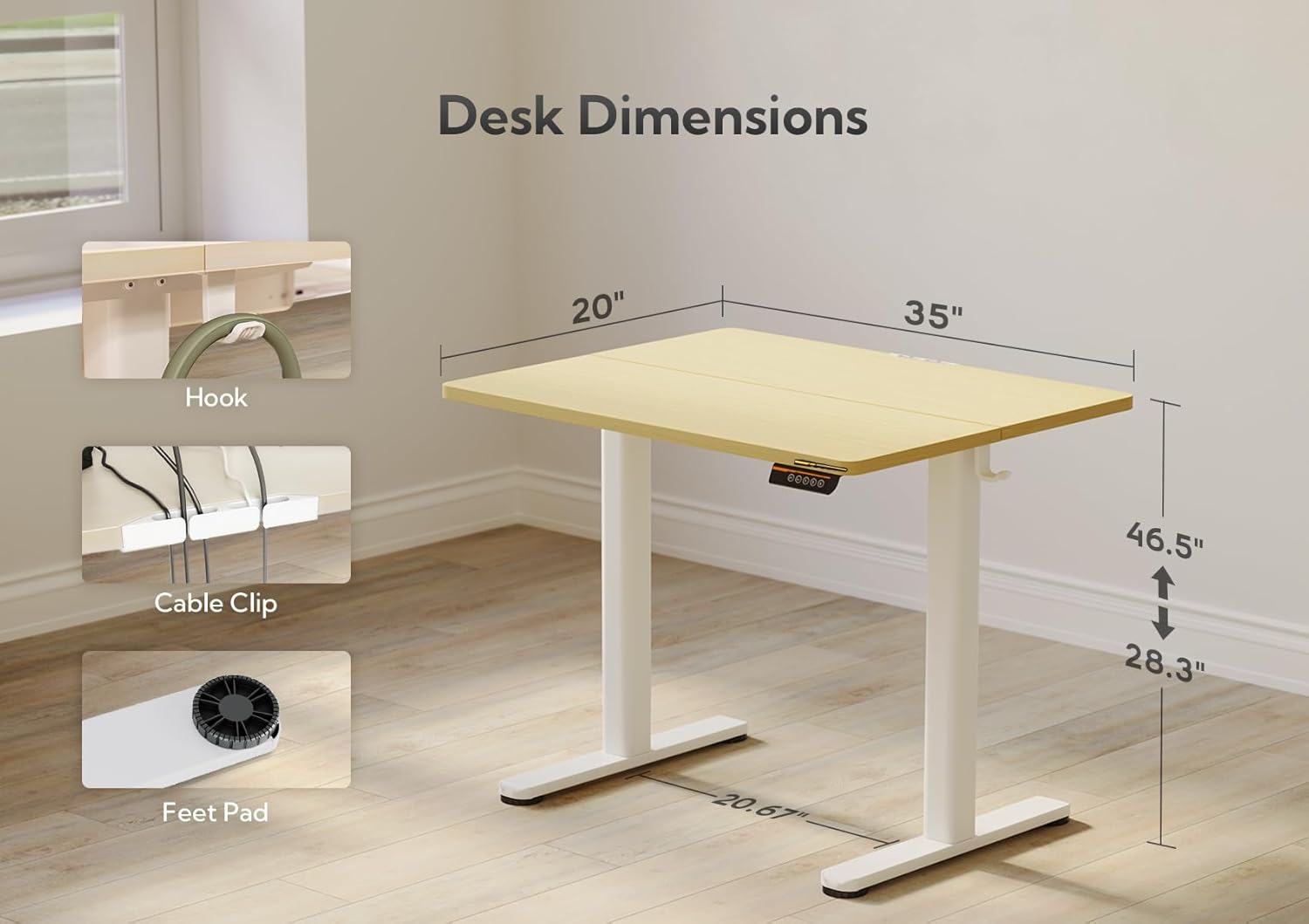 Claiks Electric Height Adjustable Stand Up Desk, 35x20 Inches Sit Stand Desk for Home Office, Nature Top/White Frame