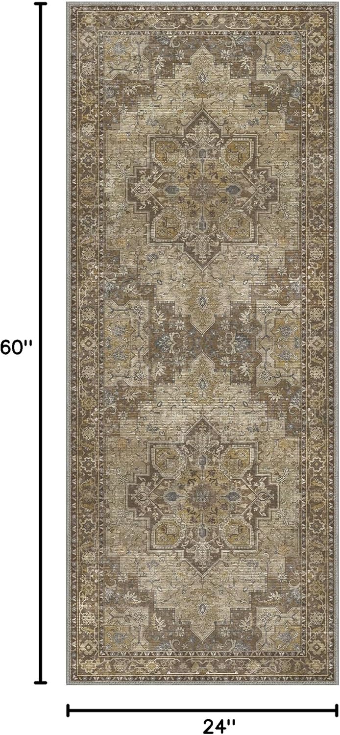 GENIMO 2x5 Runner Rugs for Hallway, Machine Washable Non Slip Vintage Retro Rugs, Low Pile Lightweight Soft Print Rug for enrtyway, Corridor, Home Office, Kitchen, Rustic Brown