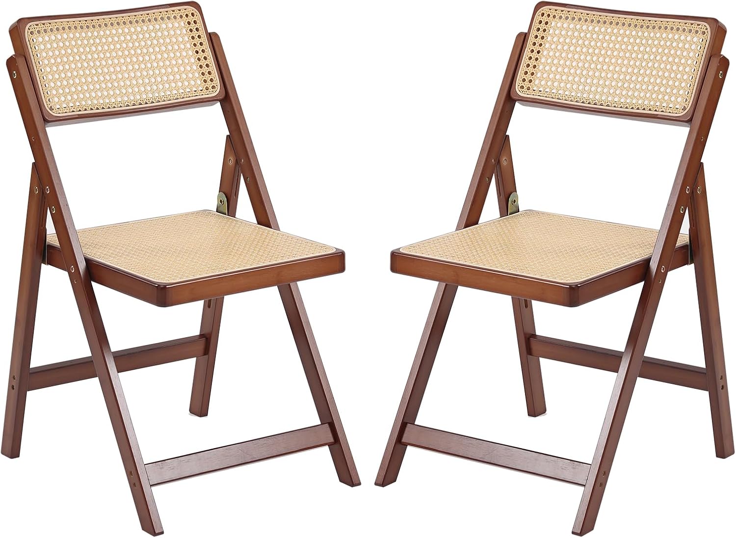 Tiita Rattan Dining Chairs Set of 2, Mid Century Modern Folding Chair, Bamboo Folding Dining Chairs for Small Space, Dining Room, Living Room, Bedroom, Walnut