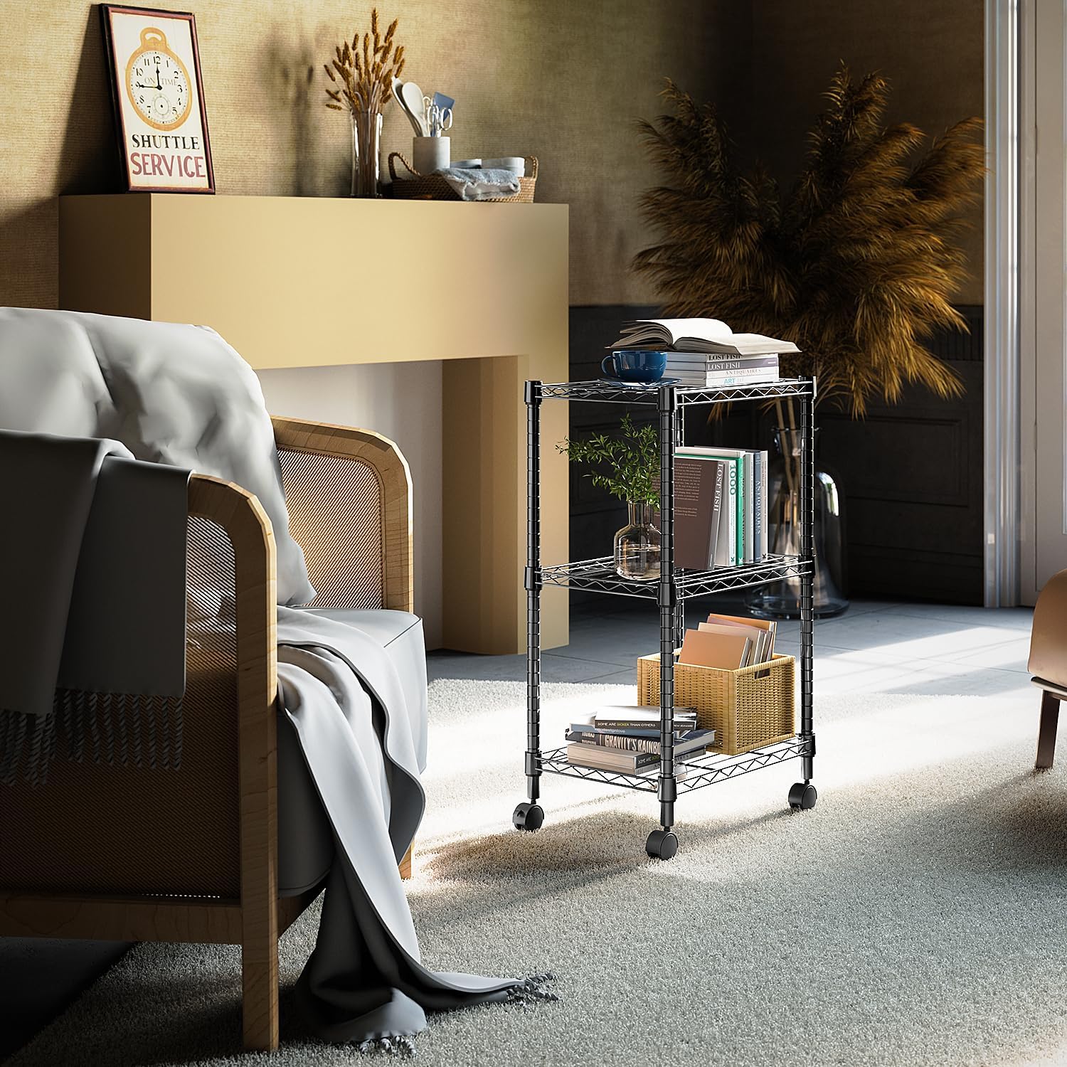 - SPACE MAGICIAN: This storage shelf is exquisitely designed to maximize efficiency in small spaces. Its multiple wire shelves provide ample vertical storage capacity, making it an ideal choice for narrow areas or corners.