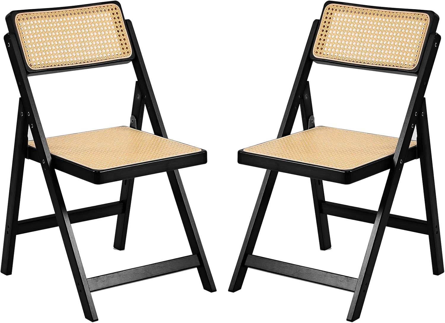 Tiita Rattan Dining Chairs Set of 2, Mid Century Modern Folding Chair, Bamboo Folding Dining Chairs for Small Space, Dining Room, Living Room, Bedroom, Black