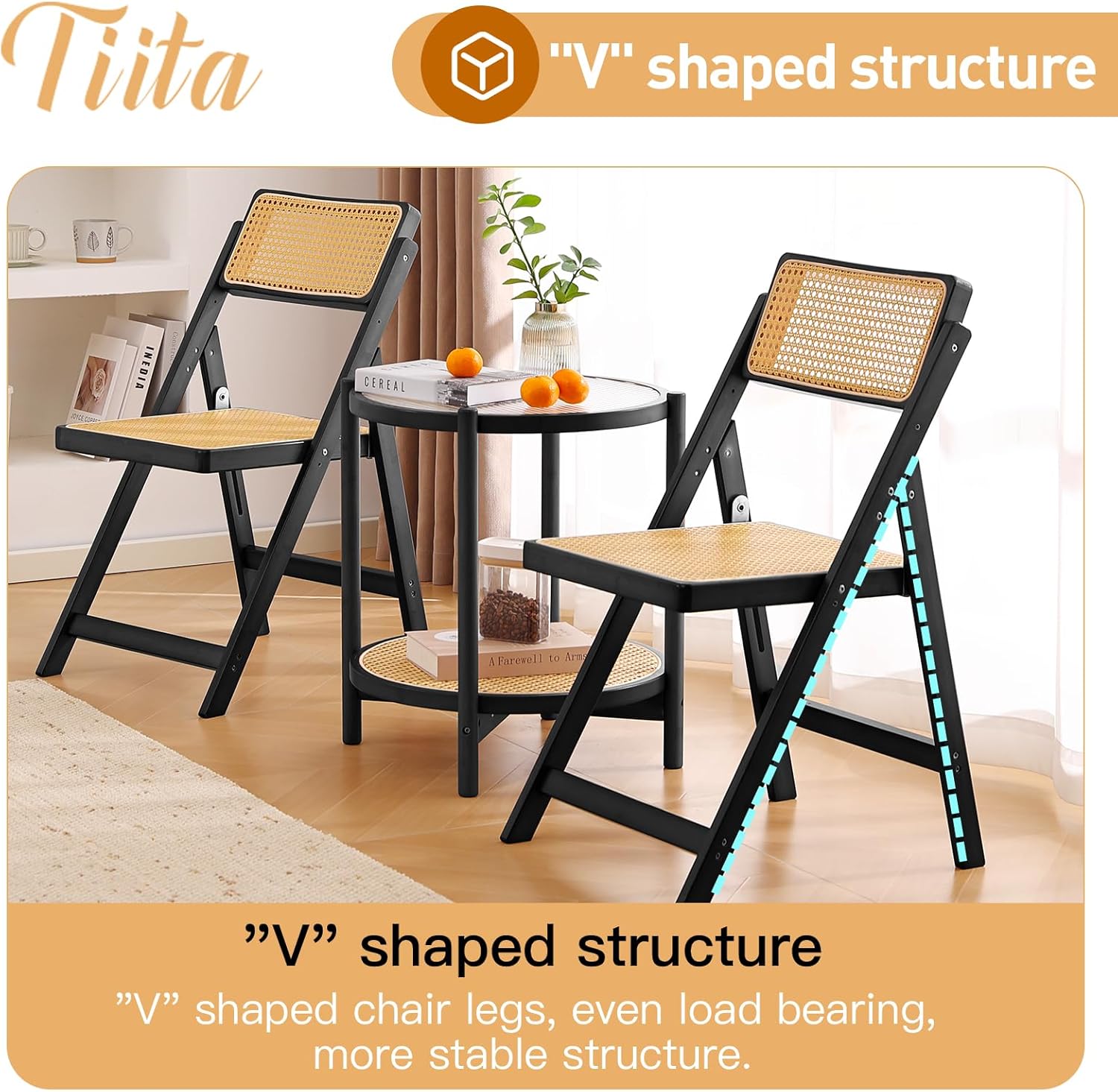 - 【Sturdy Rattan Dining Chairs】: Tiita's rattan dining chairs provide exceptional comfort with ergonomically designed seating and breathable rattan backrests. Crafted from premium solid wood, these wood folding chairs are built to last, resisting deformation and wear. Ideal for everyday use, they offer reliable seating for family dinners and gatherings, ensuring your kitchen & dining room chairs stand the test of time