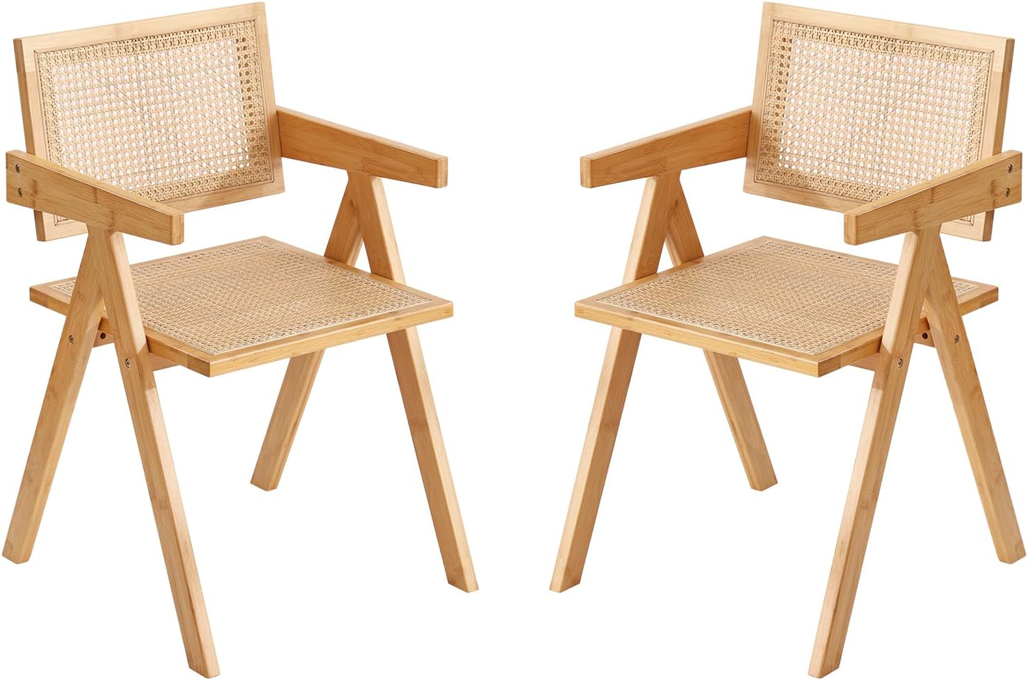 Tiita Rattan Accent Chairs, Mid Century Modern Dining Chairs Set of 2, Bamboo Living Room Chair for Reading Room Dining Kitchen, Wood