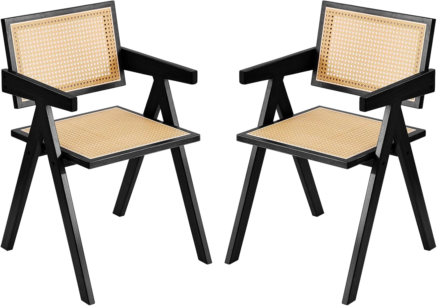Tiita Rattan Accent Chairs, Mid Century Modern Dining Chairs Set of 2, Bamboo Living Room Chair for Reading Room Dining Kitchen, Black
