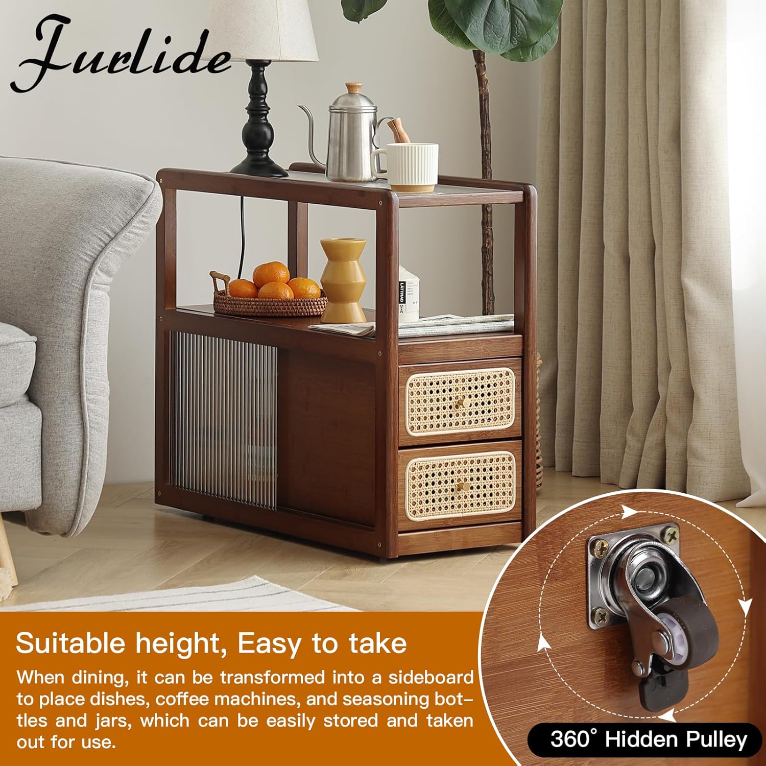 - Functional Side Table: Designed with two spacious drawers, this end table for the living room provides ample storage for magazines, remotes, and other essentials. Keep your space organized and clutter-free with this practical solution for your night stand or couch table. Additionally, featuring hidden wheels at the bottom that rotate 360°, this end table offers effortless mobility, allowing you to easily reposition it wherever you need
