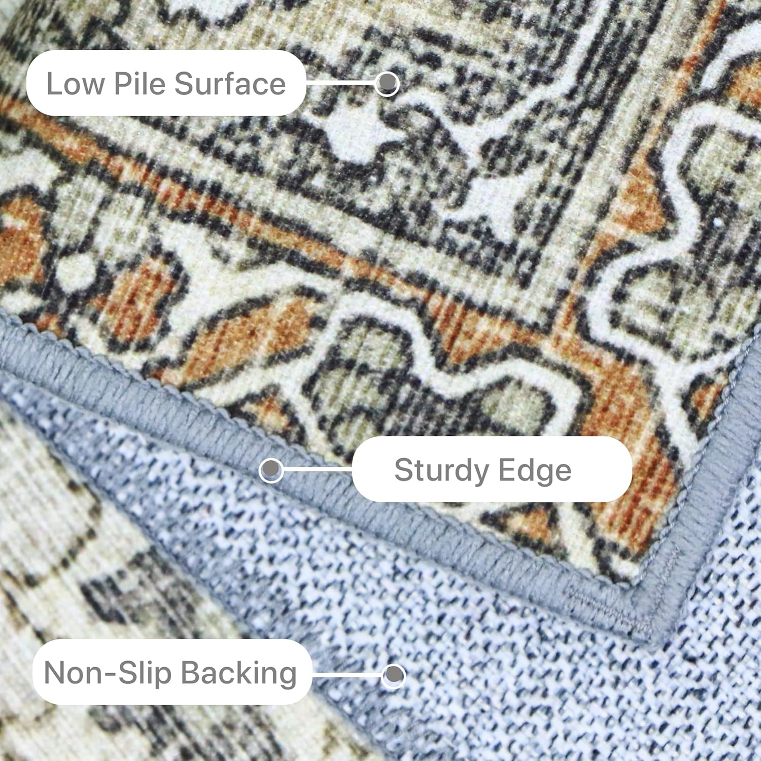 - Soft Low Pile Rug & Premium Materials:This area rug is meticulously crafted from premium, long-lasting materials, combining practicality with style. Its low pile design not only ensures ease of cleaning, preventing dirt and debris accumulation, but also offers a smooth, comfortable feel underfoot, perfect for various spaces including entryway, living room,kitchen,bedroom and more.