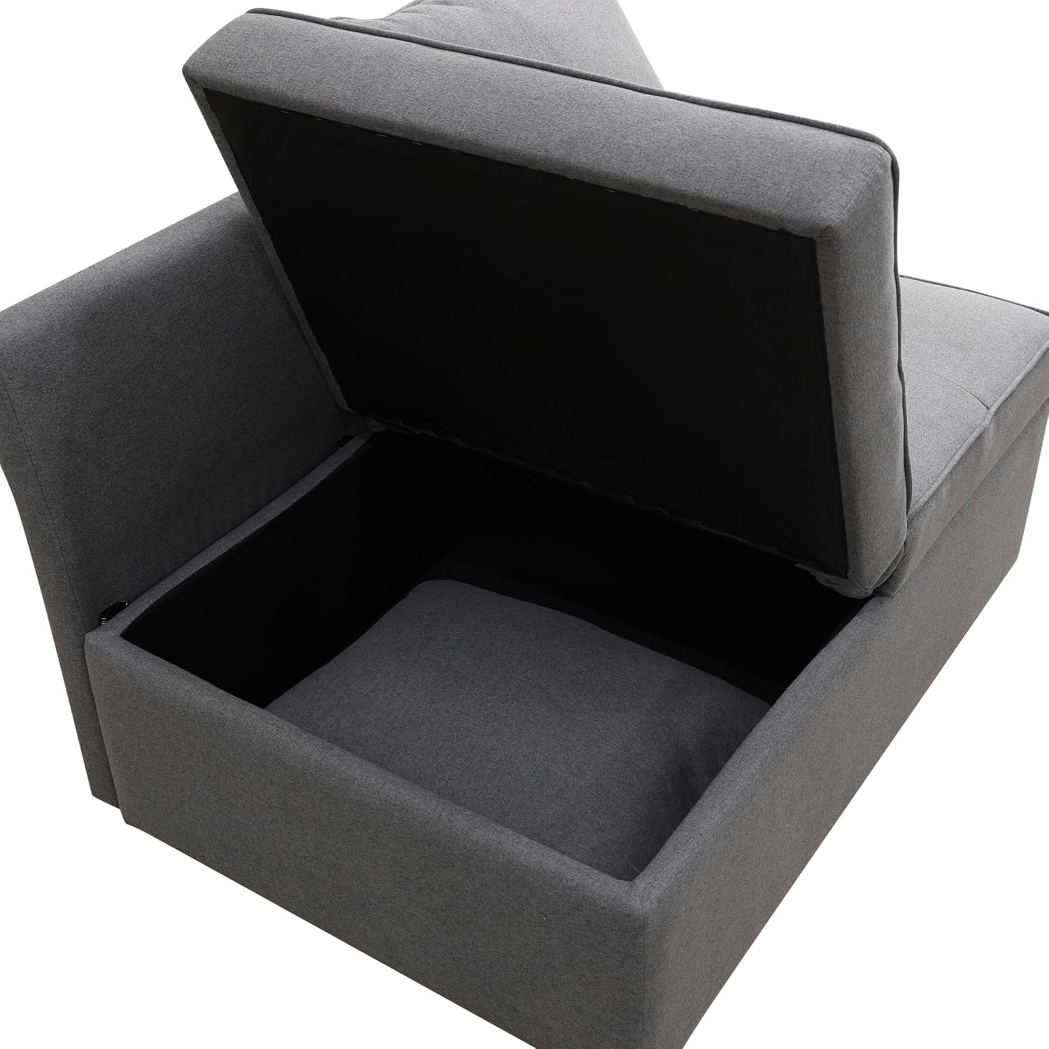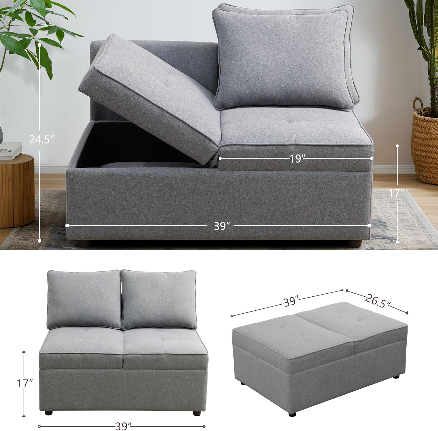 Convertible Ottoman Sofa with Storage, Modern Sackcloth Futon Couch with 2 Pillows Adjustable Backrest, Recliner Folding Loveseat for Living Room, Apartment Dorm, Office,Grey