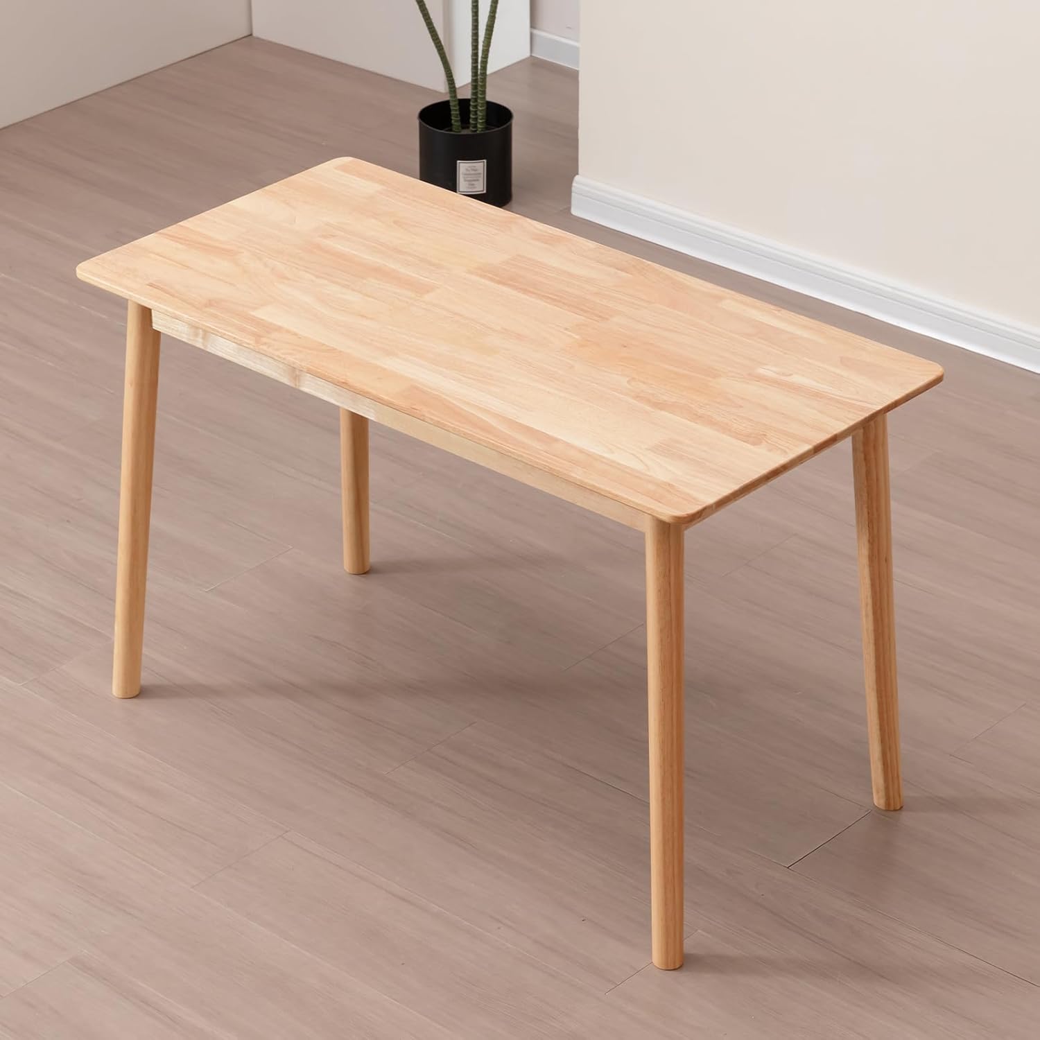Rectangular Kitchen Solid Wood Dining Table 46.8 inches Legs Sturdy Natural Rubber Wood and Walnut Color (Natural Oak)