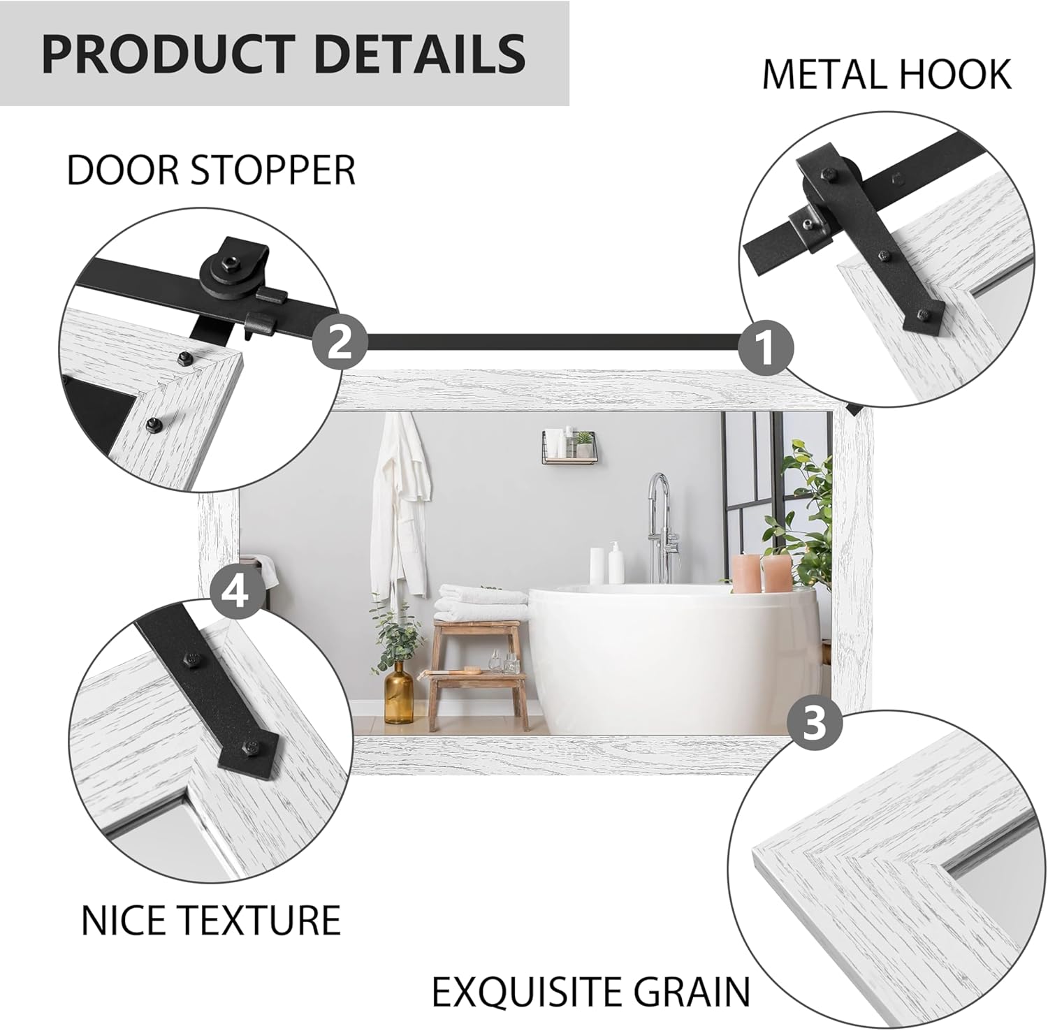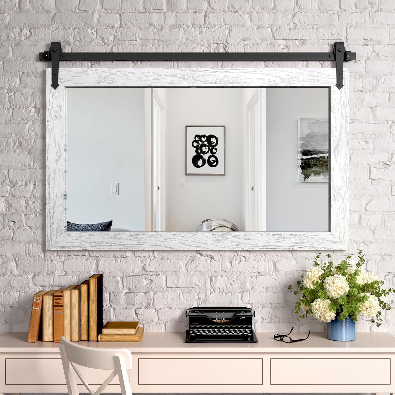Farmhouse Mirror 42”x28” White Rustic Mirror for Wall Vanity Mirrors Barn Door Style Decor Bathroom Living Room Entryway Bedroom Mirrors