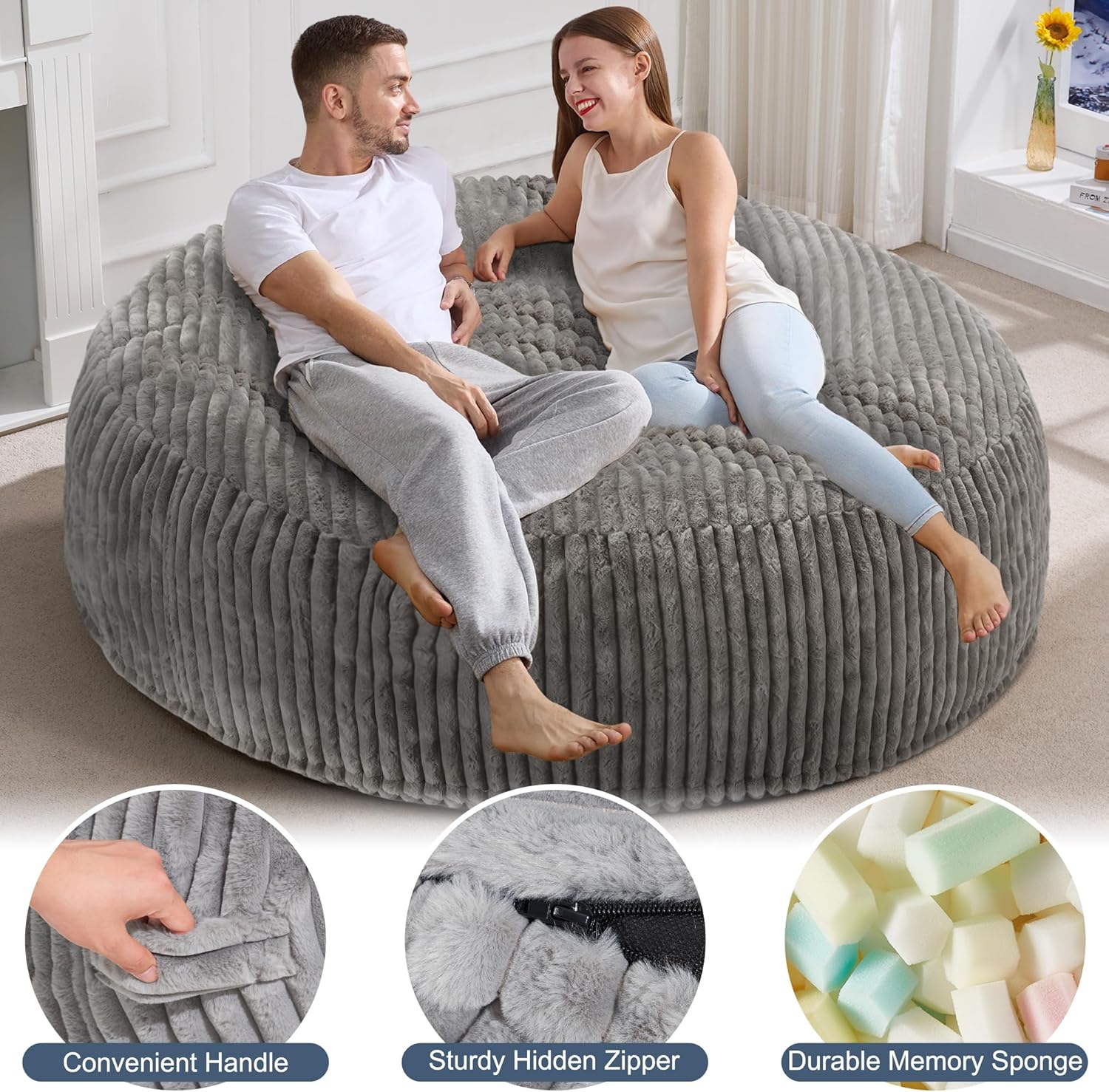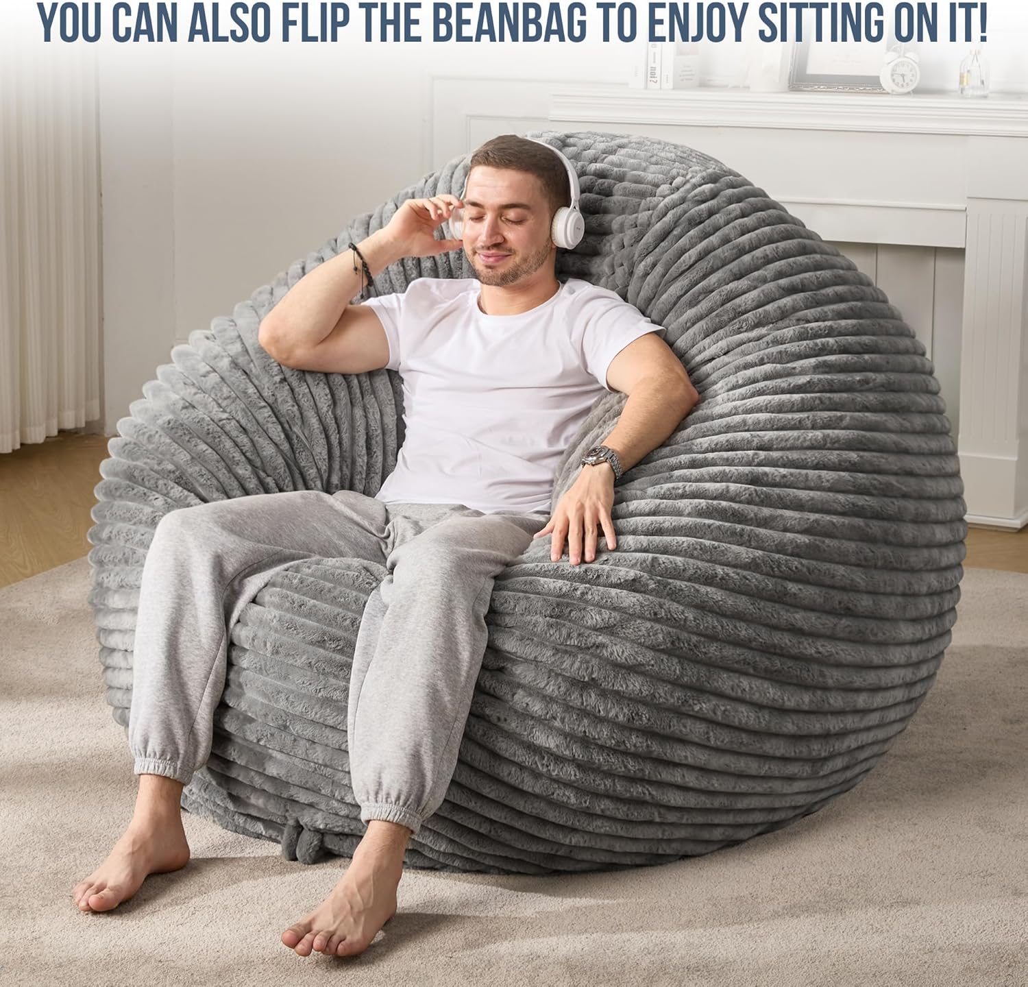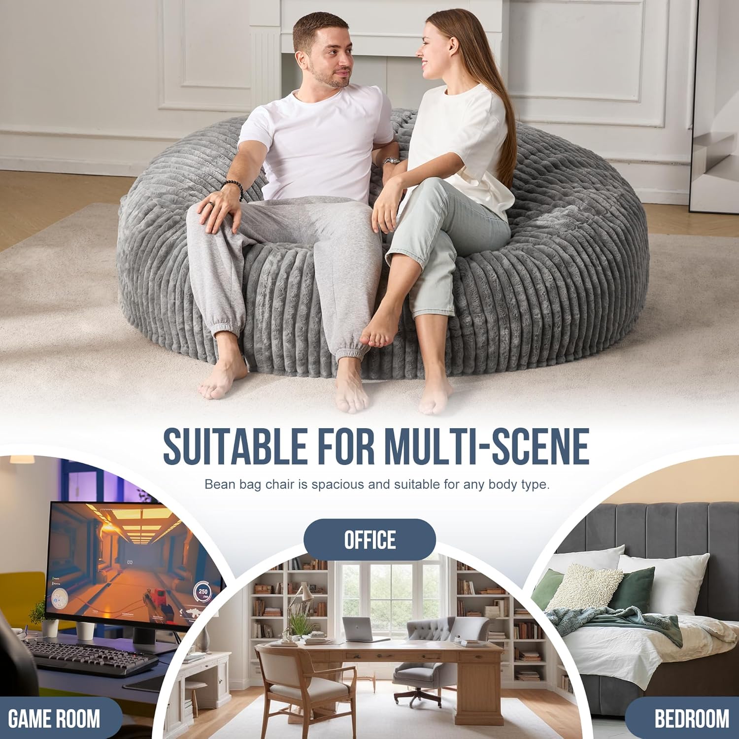 Hobestluk 6ft Bean Bag Chairs for Adults Large Beanbag Chair with Stripe Plush Cover Big Bean Bag Chair for Living Room Bedroom Dorm Office - Grey (70" x 70" x 15")