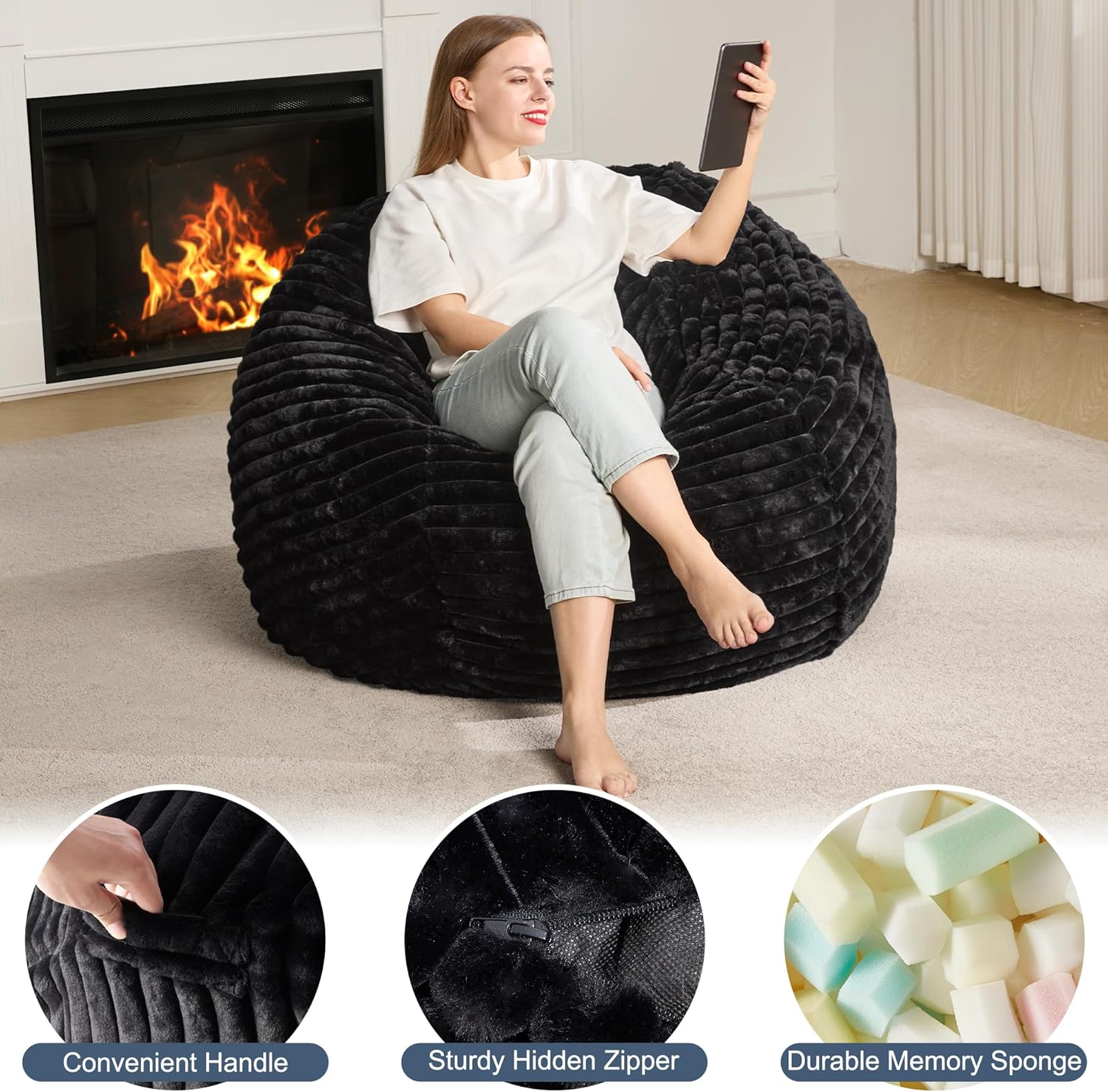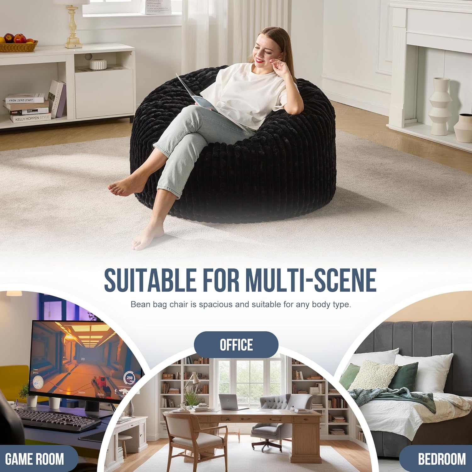 Hobestluk 3ft Bean Bag Chairs for Adults Large Beanbag Chair with Stripe Plush Cover Big Bean Bag Chair for Living Room Bedroom Dorm Office - Black (36” x 36” x 22”)