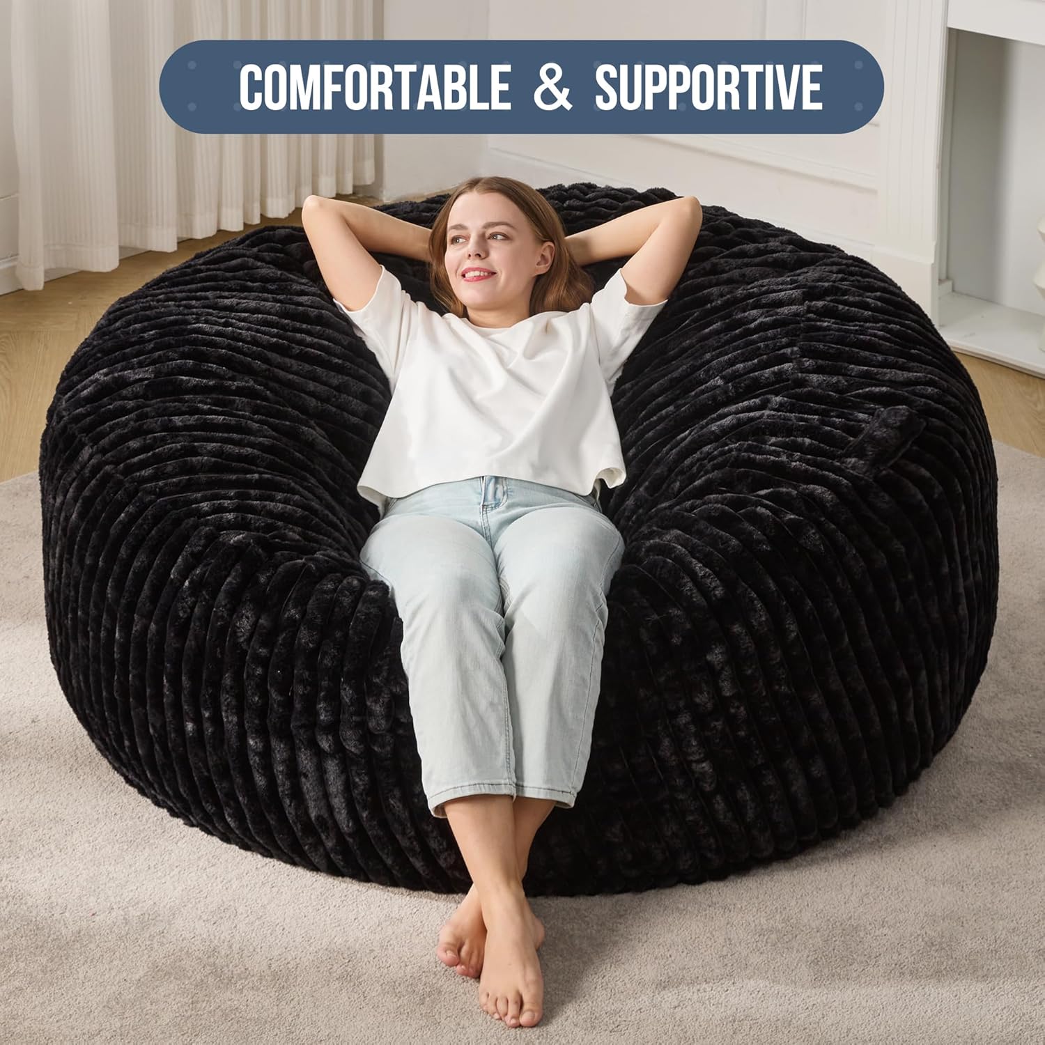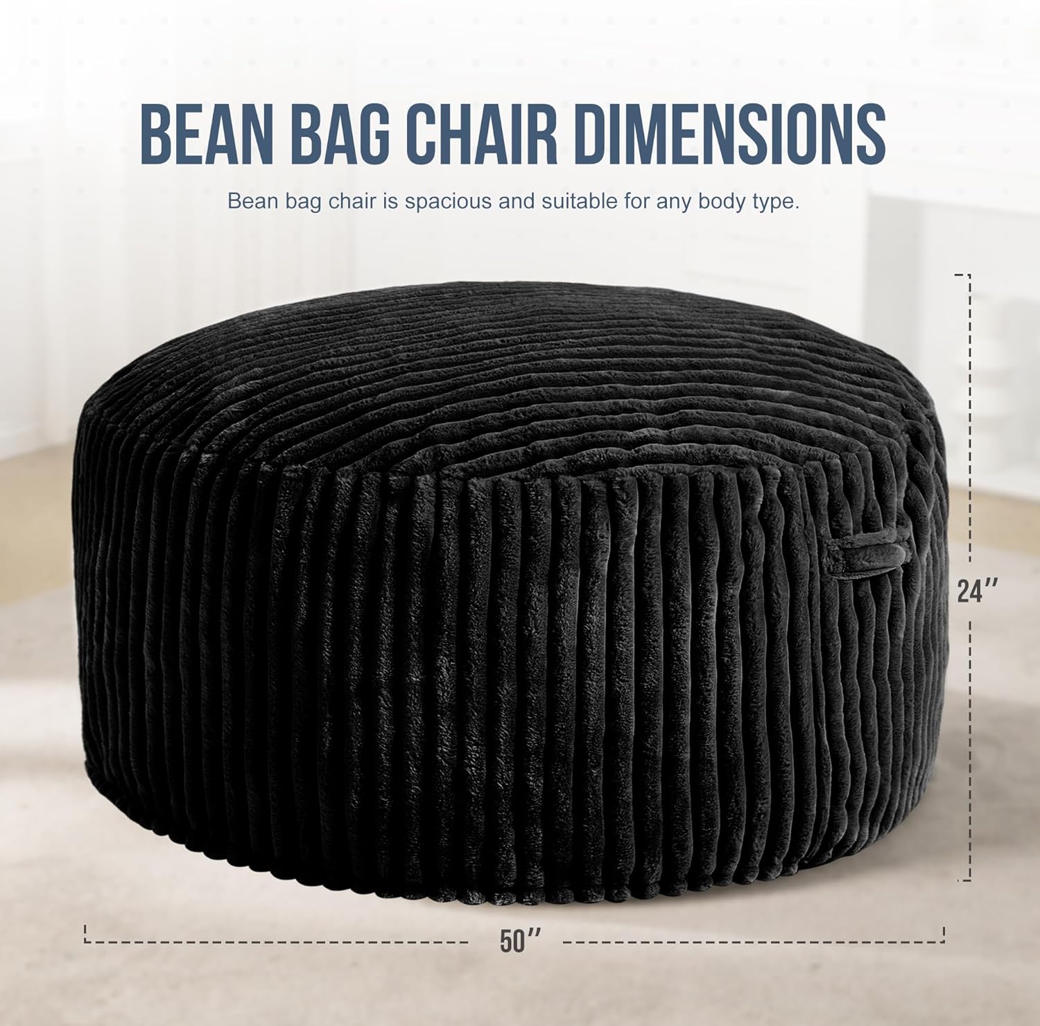 Hobestluk 5ft Bean Bag Chairs for Adults Large Beanbag Chair with Stripe Plush Cover Big Bean Bag Chair for Living Room Bedroom Dorm Office -Black (50” x 50” x 24”)