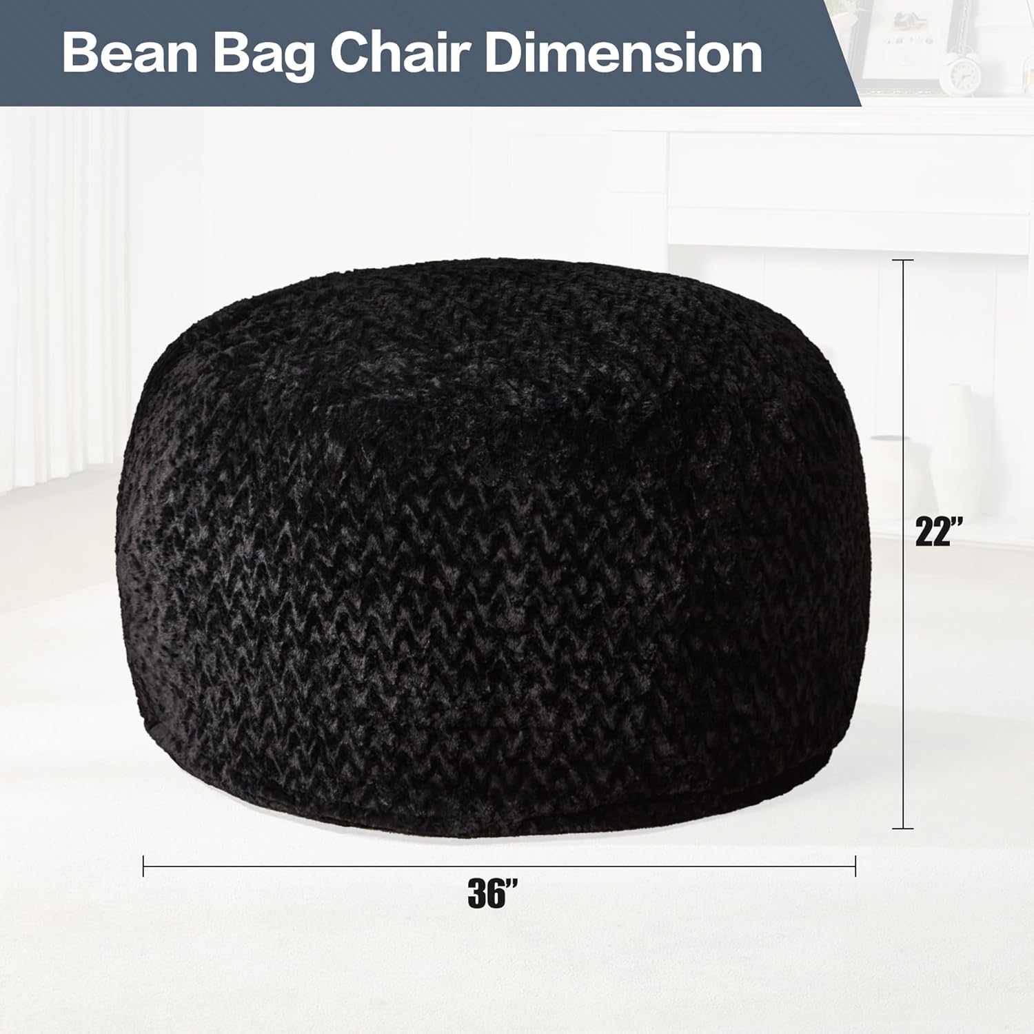 Hobestluk 3ft Bean Bag Chairs for Adults Large Beanbag Chair with Chevron Plush Fur Cover Big Bean Bag Chair for Living Room Bedroom Dorm Office - Black (36” x 36” x 22”)