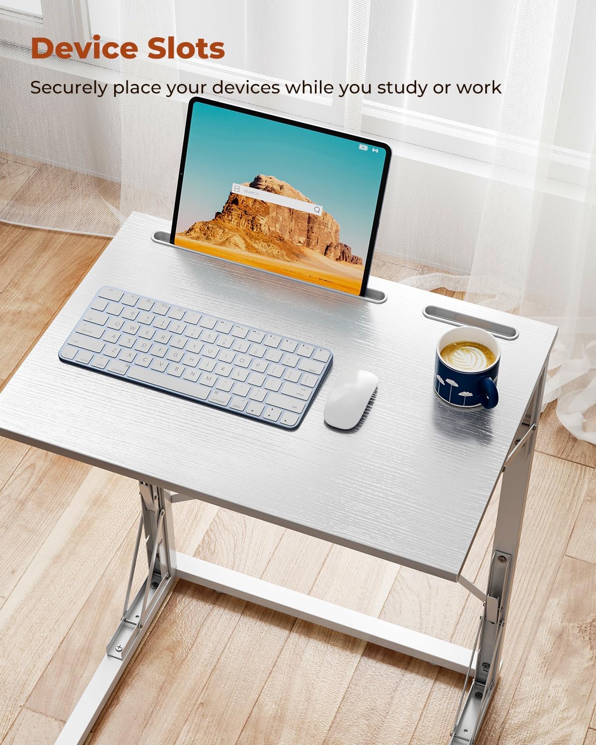 - Foldable Convenience & Device Slots: This TV dinner table offers easy storage and mobility; with slots for tablets and smartphones, it keeps devices secure; ideal as a C table end table, blending functionality with sleek design to enhance any room's decor