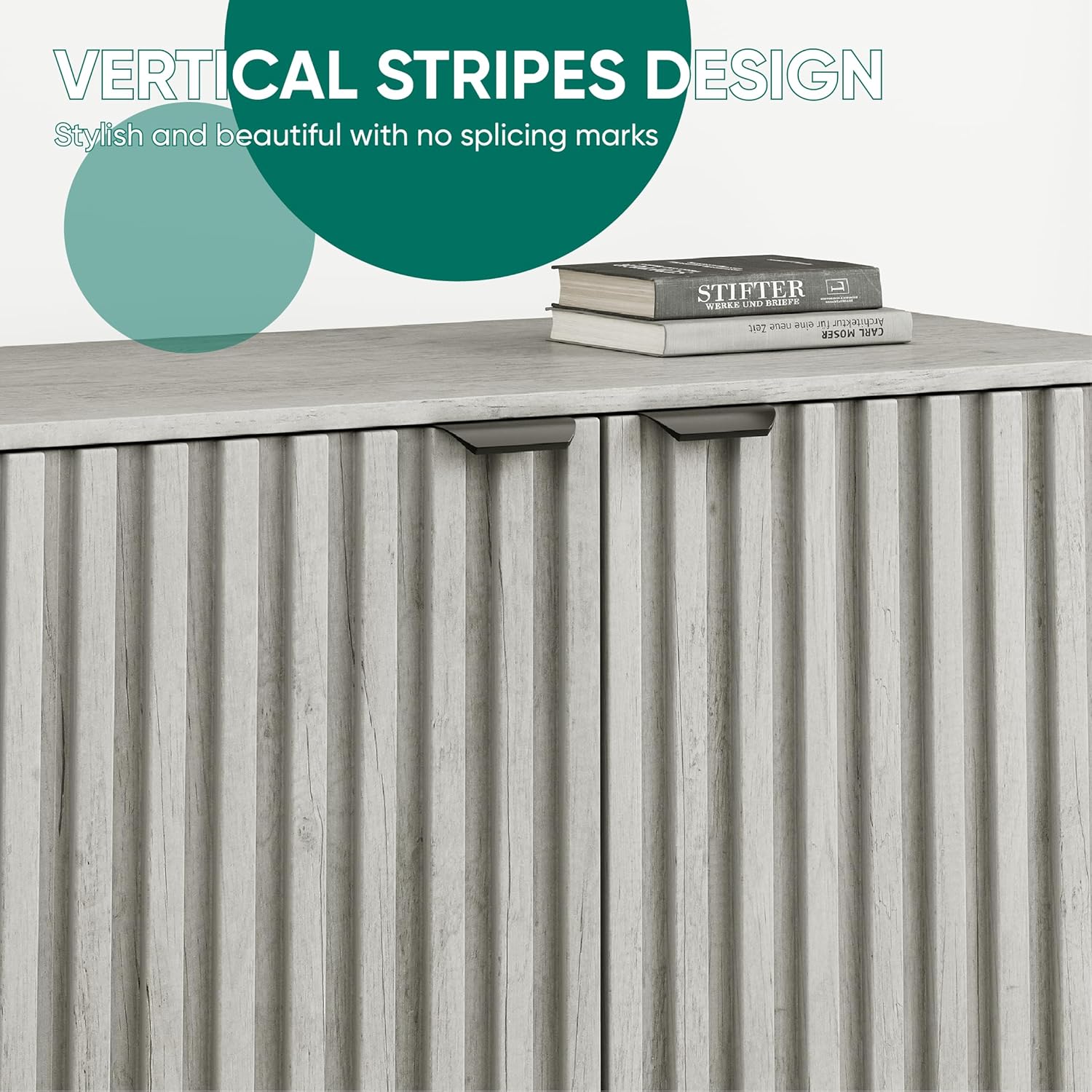 Smuxee Freestanding Fluted Sideboard, Grey Wash Buffet with Wood Storage, Adjustable Shelf for Living Room, Entryway, Hallway