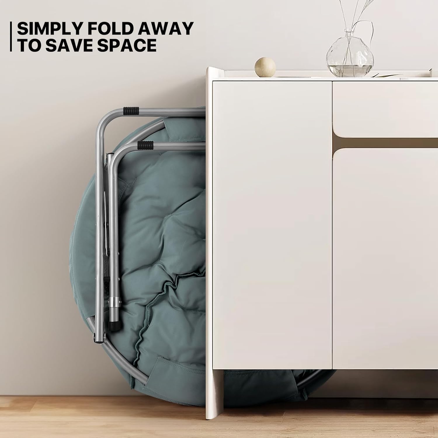 MoNiBloom Round Folding Saucer Chair for Bedroom Living Room Dorm Foldable Metal Frame Comfy Soft Lounge Lazy Cozy Moon Chair for Teens (Teal)