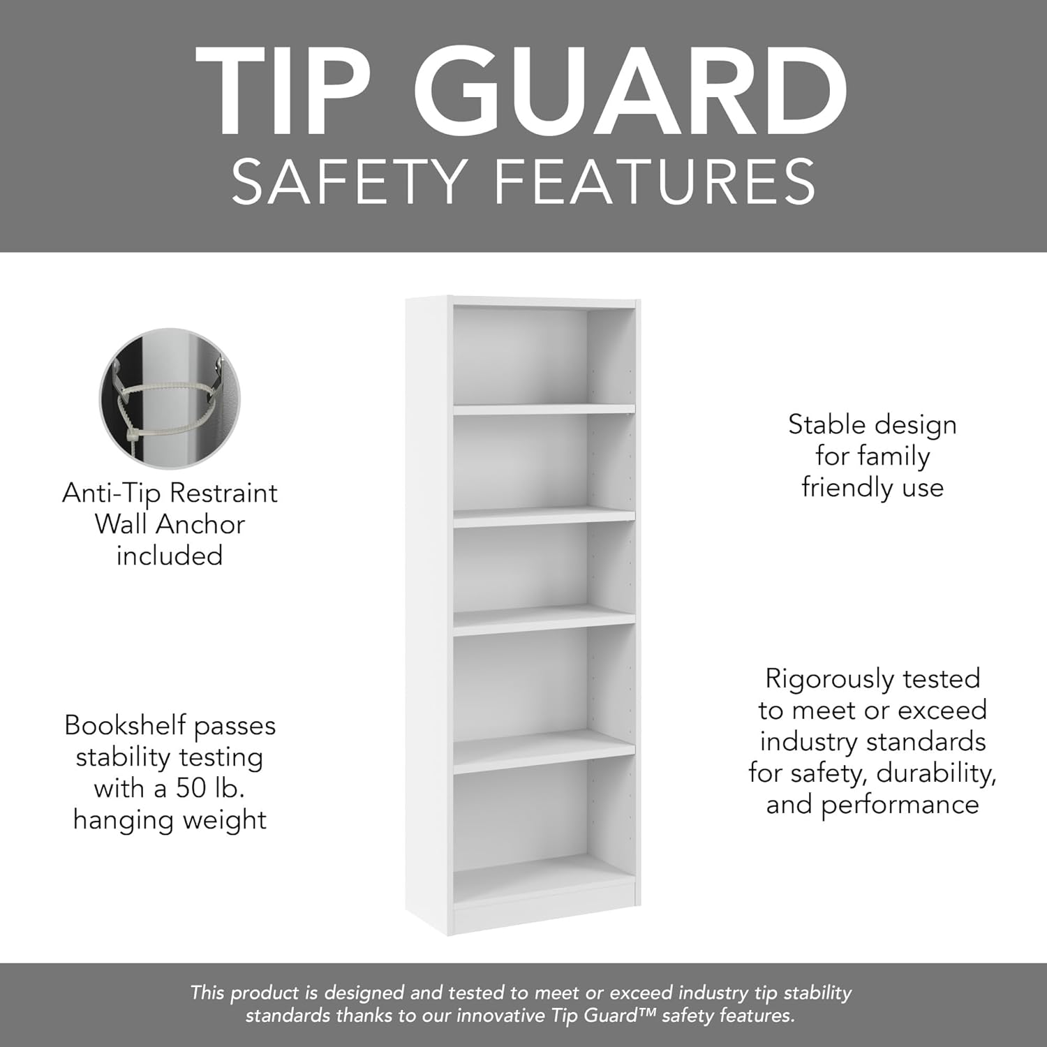 - BUILT TO LAST: The sturdy book shelves each support up to 50 pounds and measure one inch thick to resist sagging over time. Our Tip Guard(TM) safety features include a stable design and wall attachment hardware for family-friendly safety in any space.