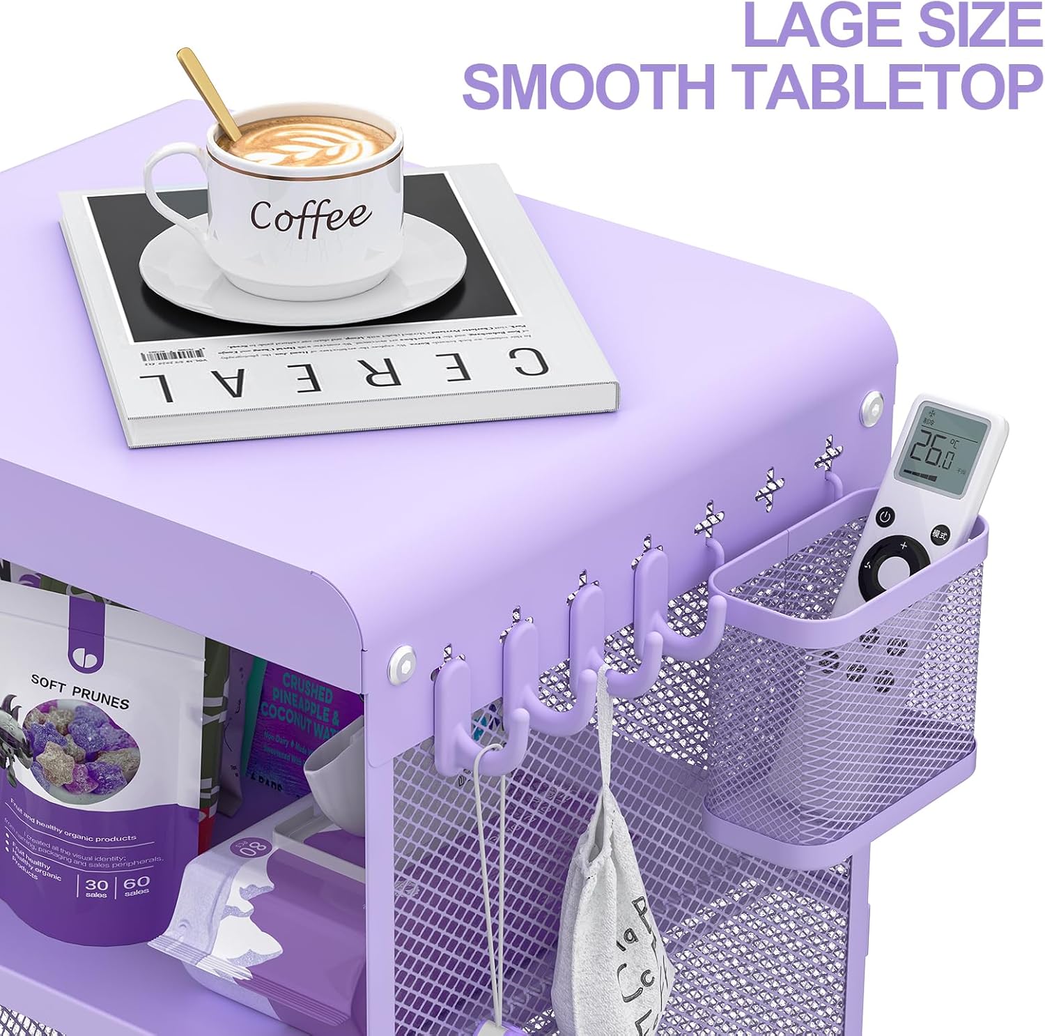 - NIGHT STAND FOR GIRLS BEDROOM - purple night stand dimension : 13.39"L x11.18"W x20.47"H. Space saving design makes limited space more comfortable! This girls bedside table is very suitable for use in living rooms, bedrooms, study rooms, offices, etc.The top open shelf of the small end table can accommodate books, lamps, calendars, photo albums and other item to be used at any time, while the middle and bottom shelves can prevent items from falling.