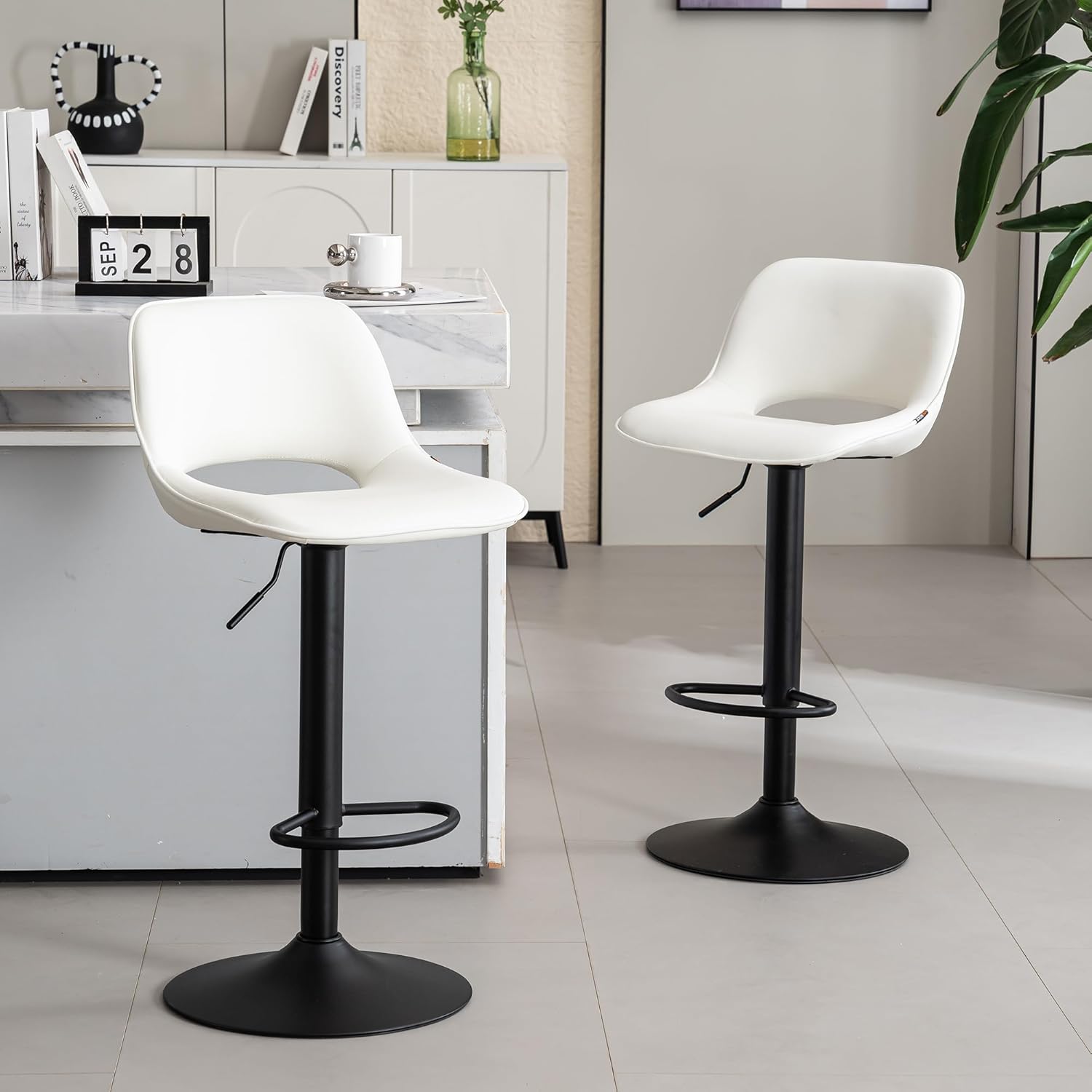 YOUNIKE Bar Stools Set of 2, Adjustable Counter Height Barstools Faux Leather Upholstered Counter Stools with Hollow Back for Kitchen Island, Warm White