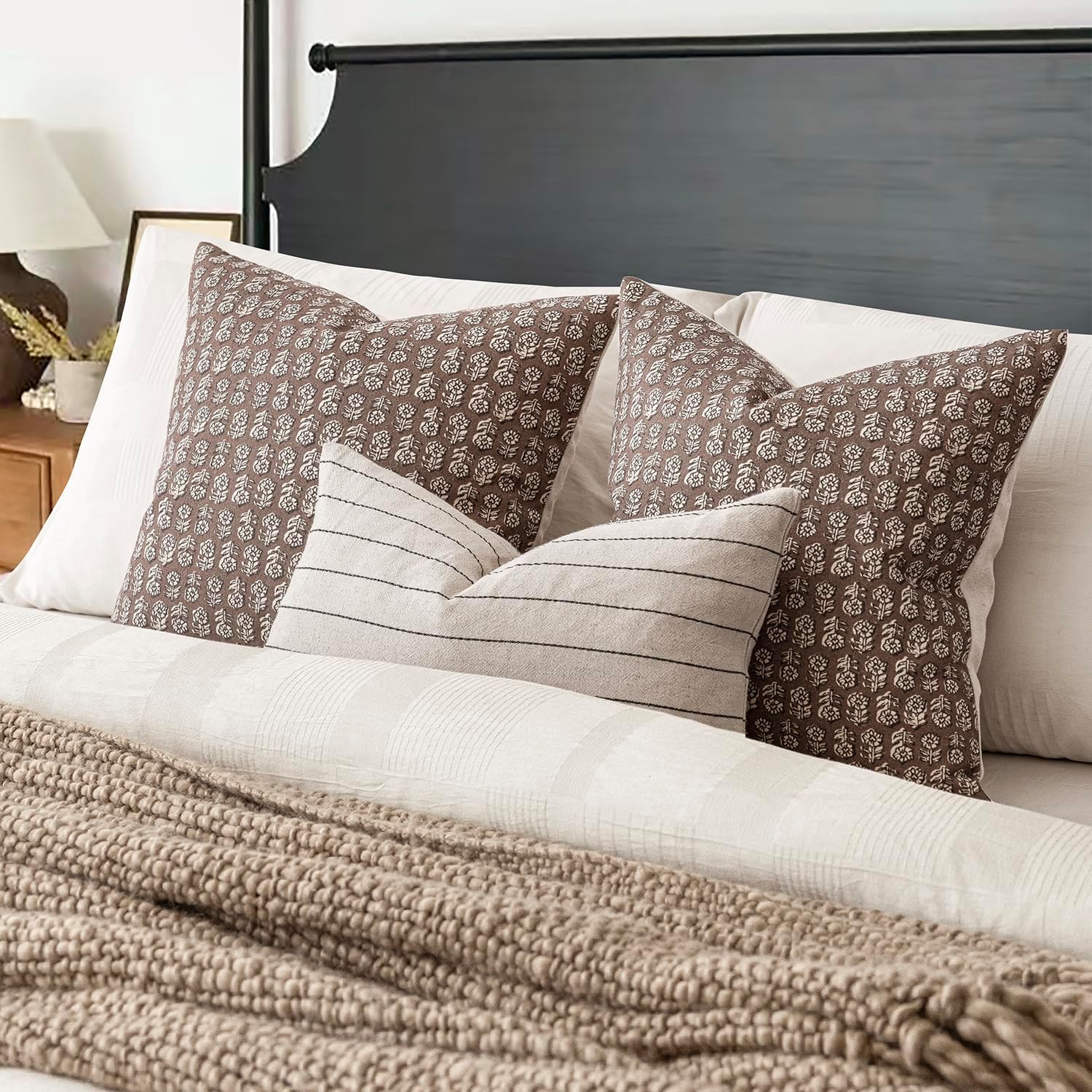 Foindtower Set of 2 Decorative Neutral Floral Print Throw Pillow Covers Vintage Accent Farmhouse Cushion Covers Boho Home Decor for Sofa Chair Couch Bedroom Living Room Outdoor,18×18 Inch,Brown