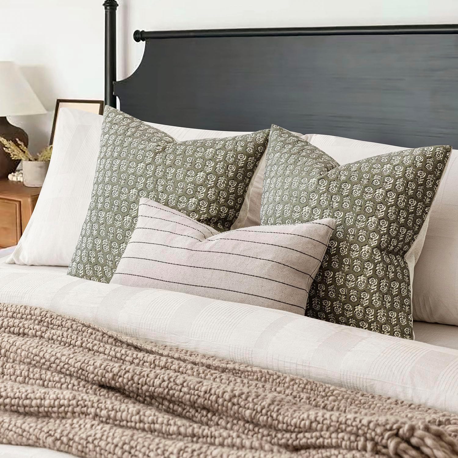 Foindtower Set of 2 Decorative Vintage Floral Print Throw Pillow Covers Neutral Modern Farmhouse Cushion Covers Boho Home Decor for Sofa Chair Couch Bedroom Living Room Outdoor,18×18 Inch,Sage Green