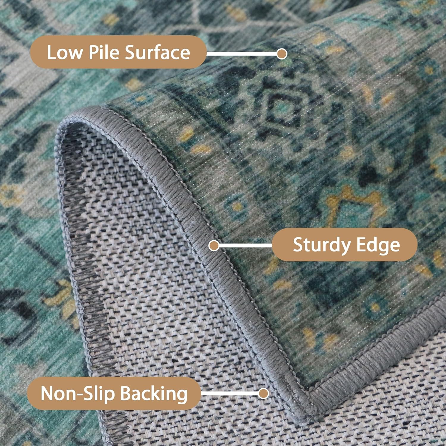 GENIMO 2x6 Runner Rugs for Hallway, Machine Washable Non Slip Vintage Rugs, Low Pile Lightweight Soft Print Rug for Enrtyway, Corridor, Home Office, Kitchen, Dark Green