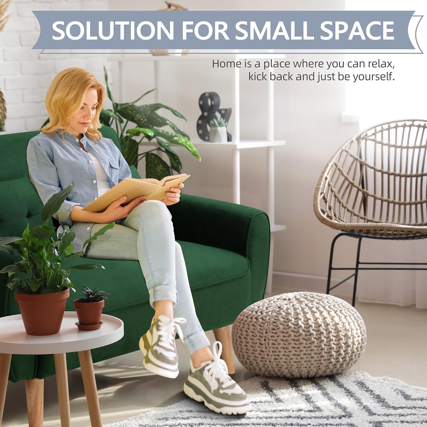 - Small Space Solution:Don’t doubt that our small sofa is definitely a small space solution. Light weight design but durable enough for daily using.This small couch with upholstered sponge,human design, 2 pillows, offer you comfy touch. This sofa is a pretty addition to small space.