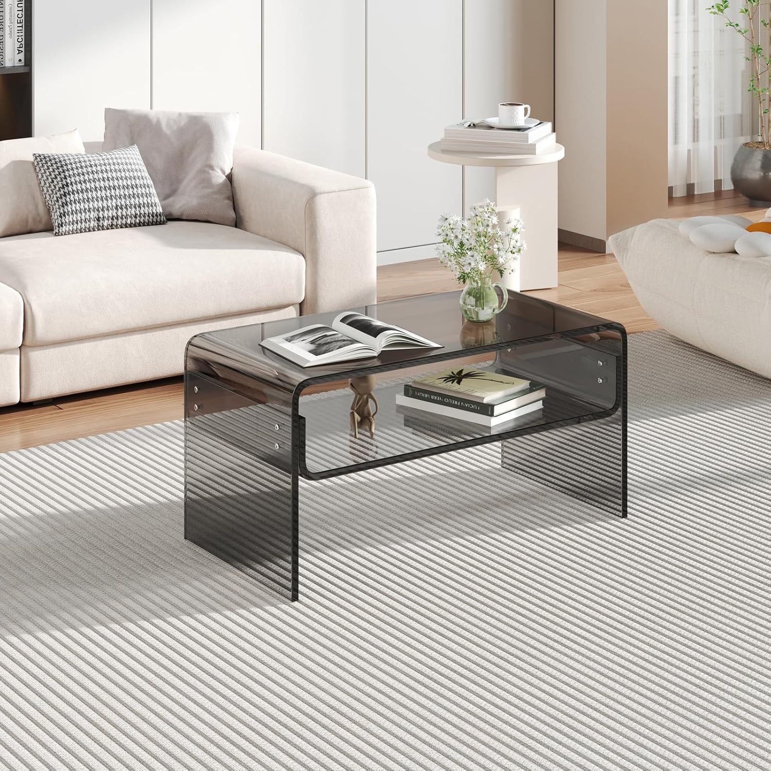 Acrylic Coffee Table, Black Rectangle Modern Side Table Furniture, Tea Table with Open Storage, Suitable for Living Room, Office Reception and Bedroom