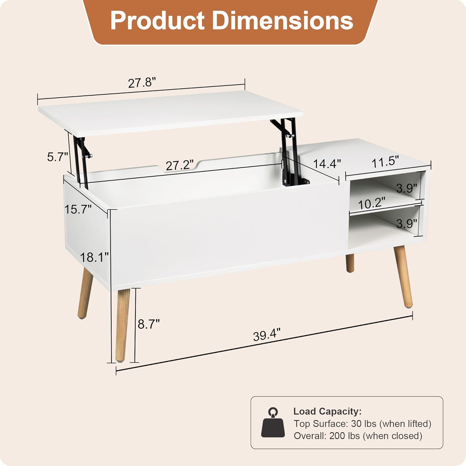 - Lift-Top Modern Design: The cute coffee table that lifts up boasts a mid-century-modern-inspired design with a lift-top tabletop that extends upward, creating an elevated work surface perfect for working, dining, or relaxing in any living space