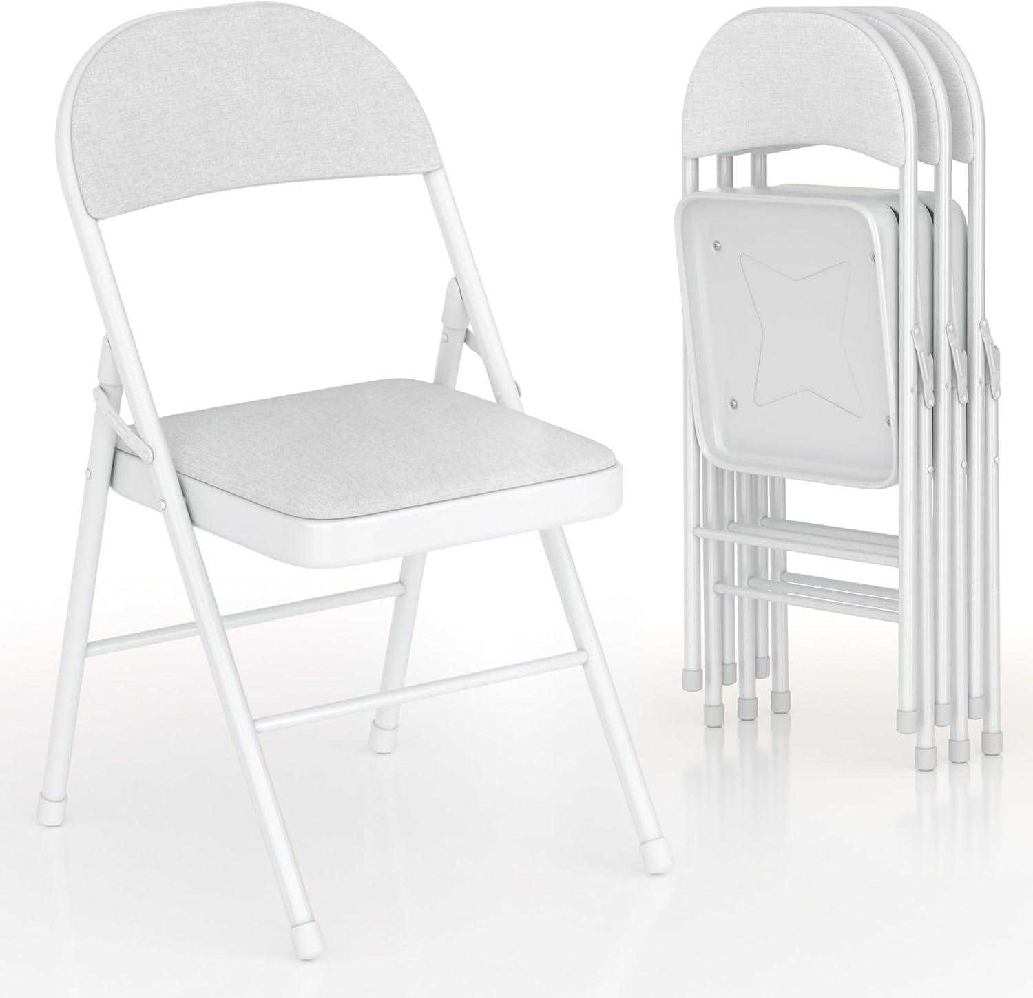 VECELO Padded Folding Chairs 4 Pack, Comfortable Cushioned Seat & Backrest with Steel Frame, for Office, Indoor Outdoor, Commercial Events, Light Grey
