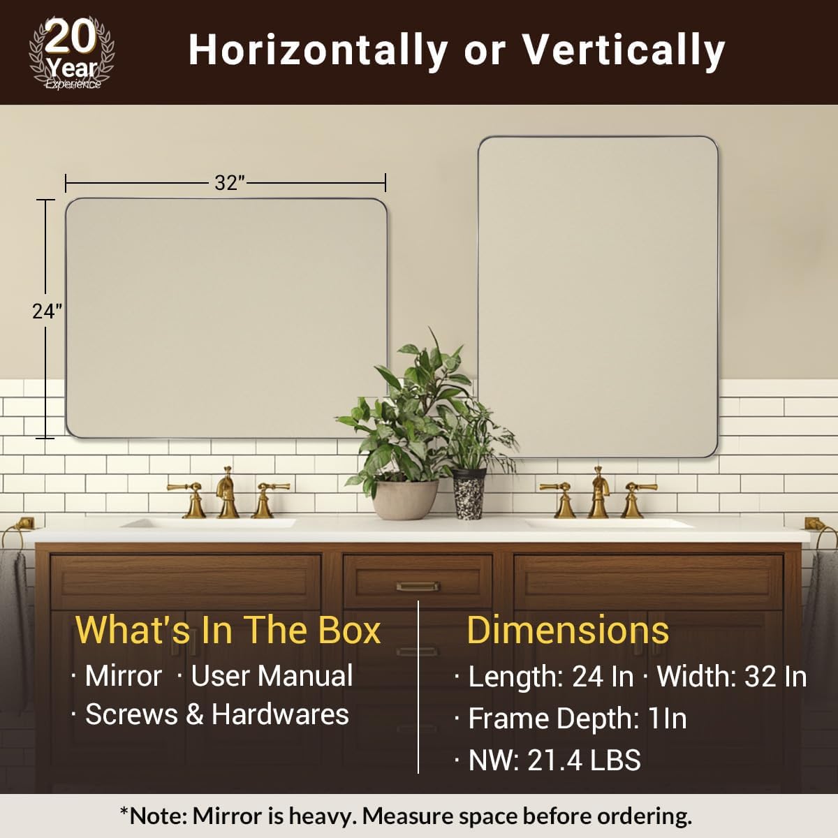 - STUNNING CLEAN LOOK: This chrome framed mirror for bathroom showcases a rounded rectangle design that is modern and clean, ensuring safety as well; The electronic display grade glass gracefully floats in the frame with a slim gap, presenting an elegant floating appearance which making it a must-have item