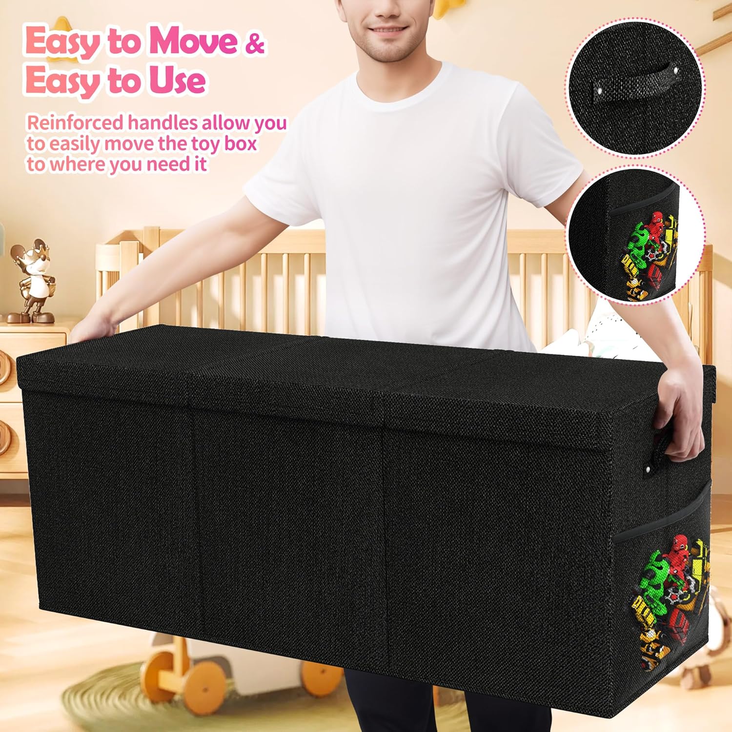 Extra Large Toy Box, Collapsible Sturdy Kids Toy Chest for Boys, Girls, 40"x14"x16" Storage Organizer Toddler Storage Bins with Lids, Toybox Basket for Living Room, Bedroom, Nursery, Black