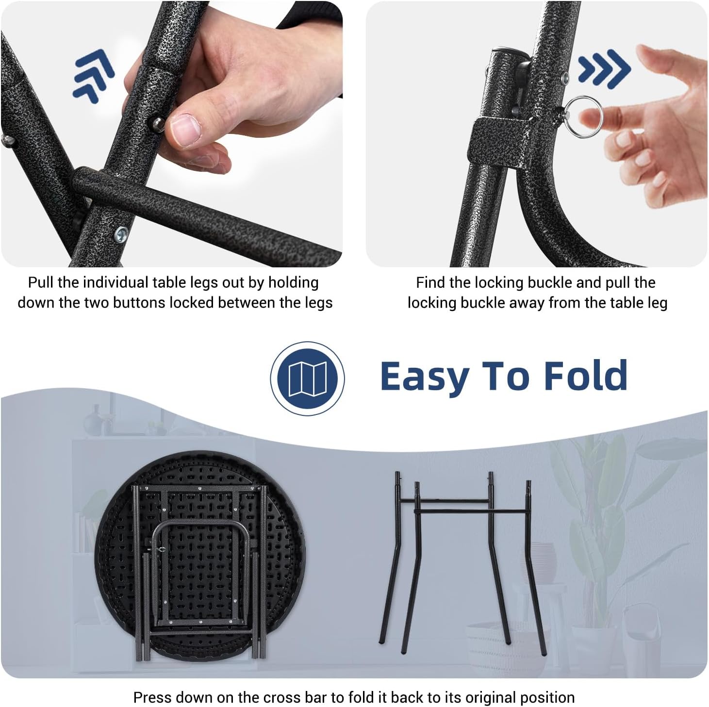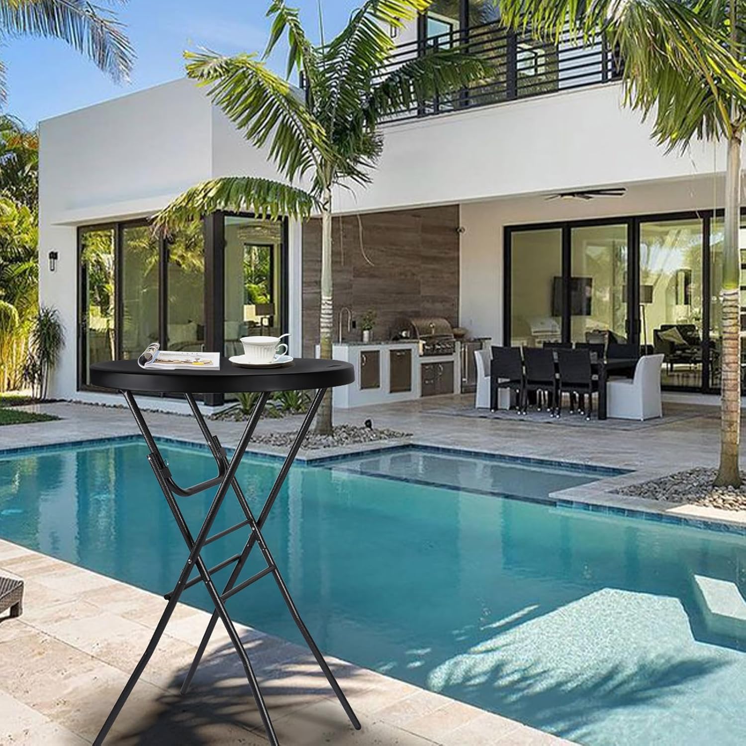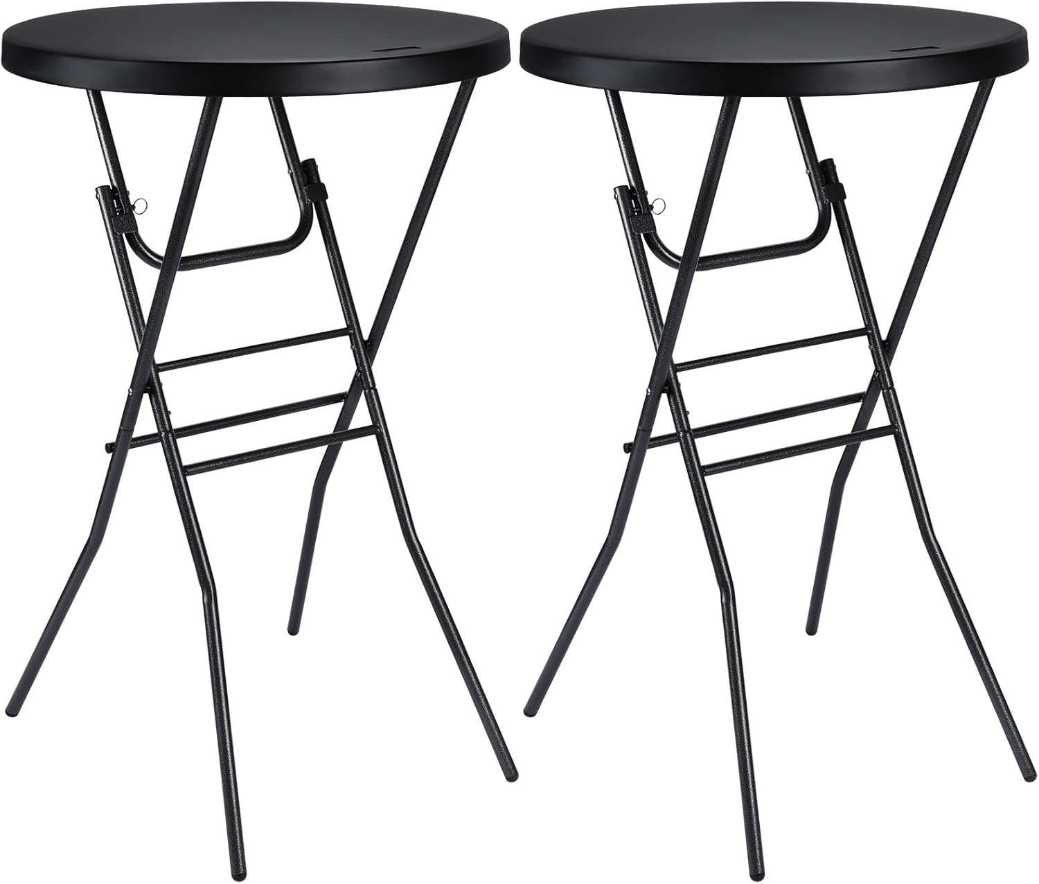 Cocktail Table 28in Folding Round High Top Indoor Outdoor with Removable Legs, Tall Bistro Foldable Bar Height Table for Parties, Patio, Backyard, Dining Room, Events, Black- 2PCS