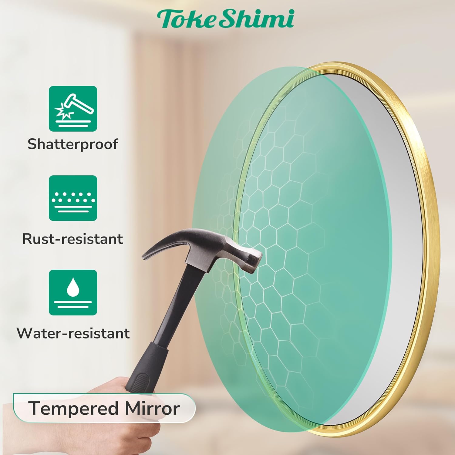 - Strength and Safety Combined: Equipped with an shatterproof film, this brushed gold wall mirror framed is not only stylish but also safe. In the unlikely event of breakage, the shatter-proof design keeps fragments contained, preventing accidents and giving you peace of mind.
