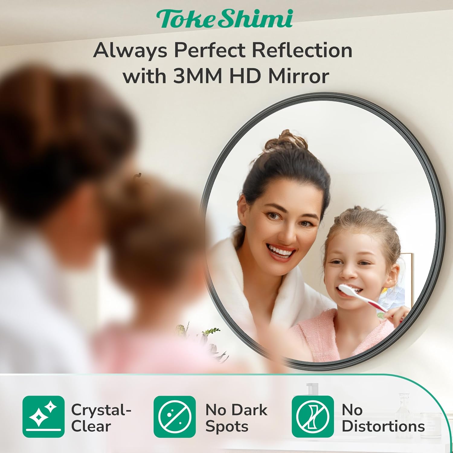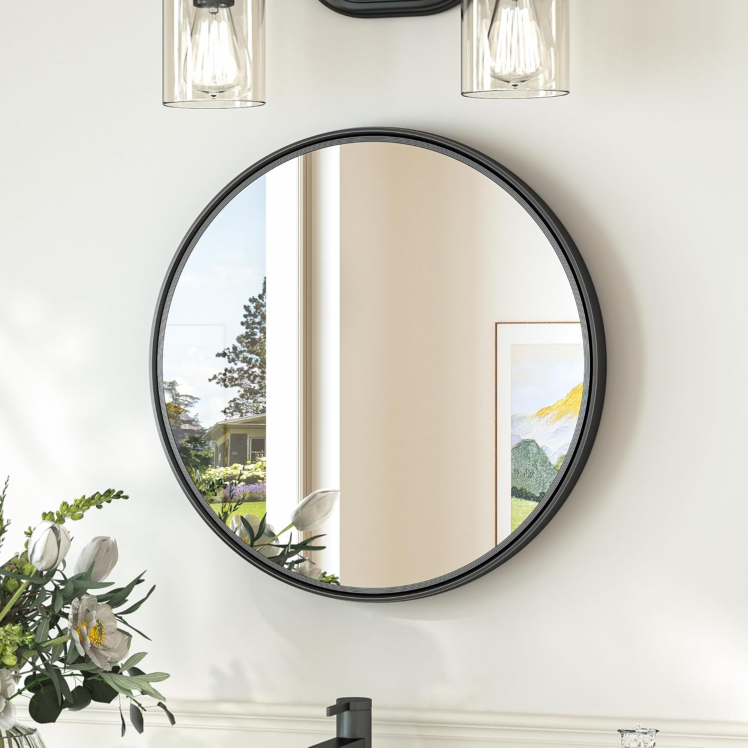 - Built to Last: Engineered with solid glass, this round wall mirror is not only more durable but also more fall-resistant. This wall mirror for bathroom is designed for longevity, making it a reliable addition to your home for years to come.Plus, its waterproof and moisture-proof features make it perfect for high-humidity areas like bathrooms, so you can enjoy a crystal-clear reflection without worry.