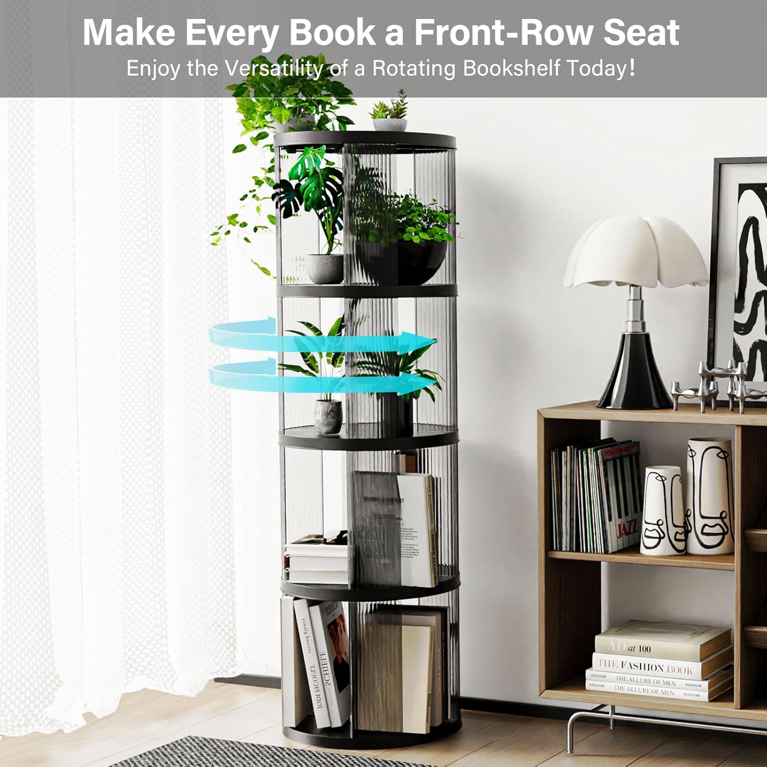 - 【Smooth Rotating Function For Easy Access】: The bookshelf rotates 360 degrees smoothly, making it easy to access every tier. No need to move other books or items to reach what you need—it spins effortlessly for convenient storage and retrieval.