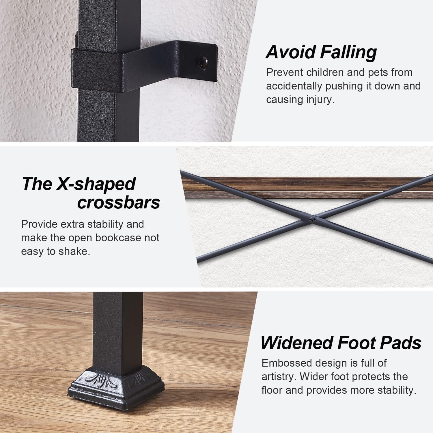- 【Materials&Weight Capacity】This 6 bookcase made of high-quality P2 standard MDF board and thick metal frame.With extra support tube under each shelf,Based on this, This heavy duty bookshelves will not be deformed and damaged during long-term use.Please remember to install the anti tilting tool on the wall for better stability and less unexpected injuries.