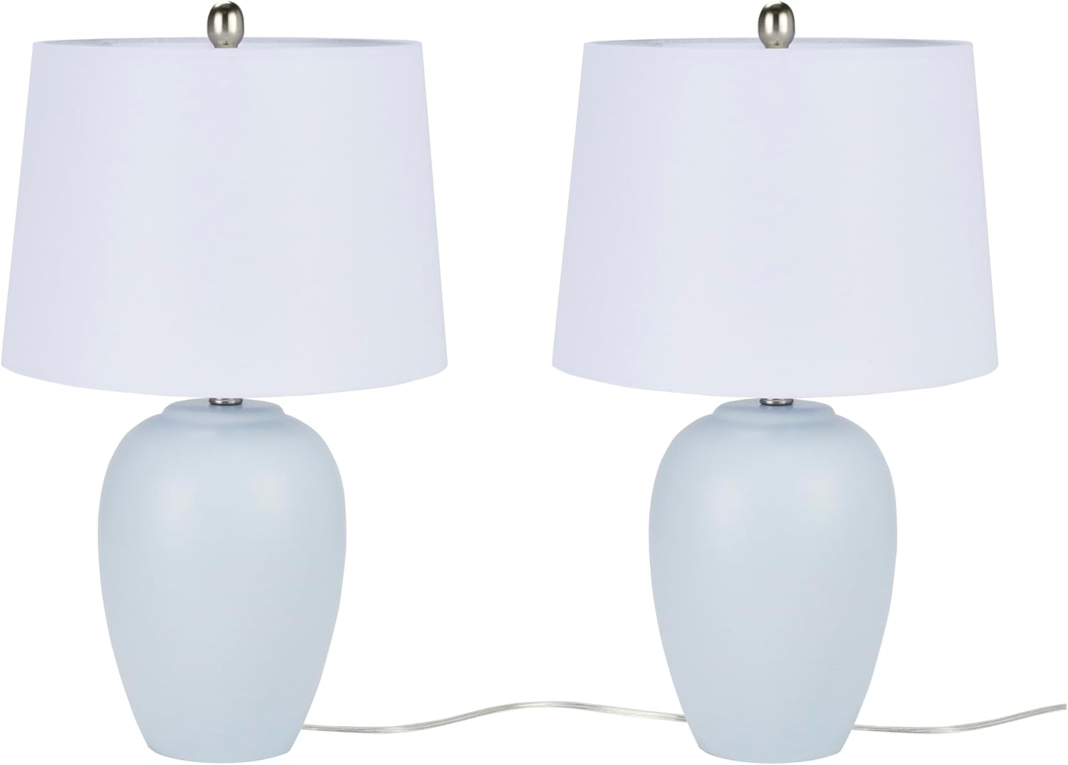 Nourison 23" Coastal Blue Ceramic Pot Table Lamp for Bedroom, Living Room, Dining Room, Entryway, with White Shade, Set of 2 Lamps