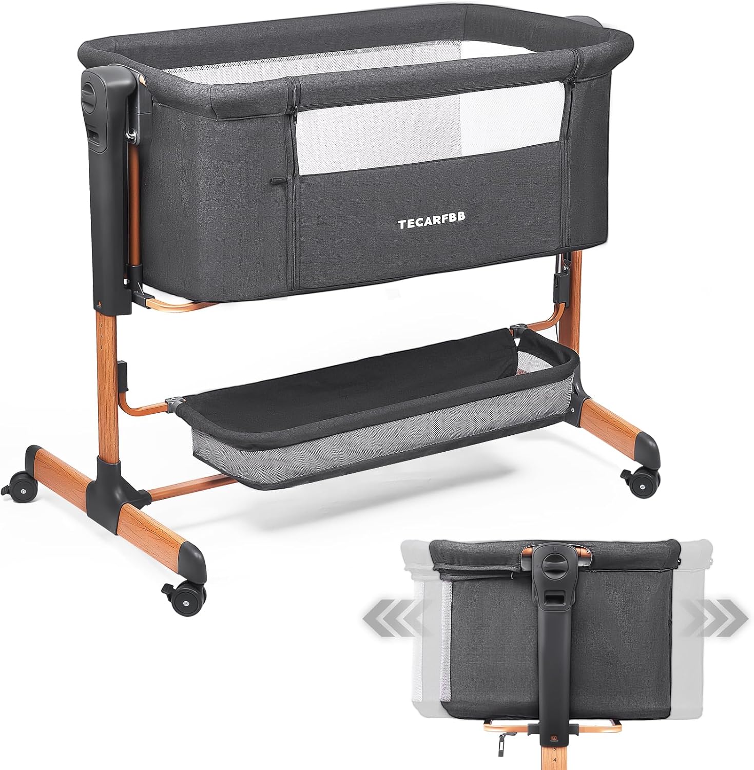 - Safe, Breathable and Soft : Two-sided breathable mesh wall to maximize air circulation and prevent suffocation of baby, the soft mattress makes the baby sleep better. The bedside bassinet for baby is made of top-quality materials and has passed CPSC testing to meet baby safety requirements. Newborn bassinet comes with silent wheels with brakes to ensure safe and smooth movement