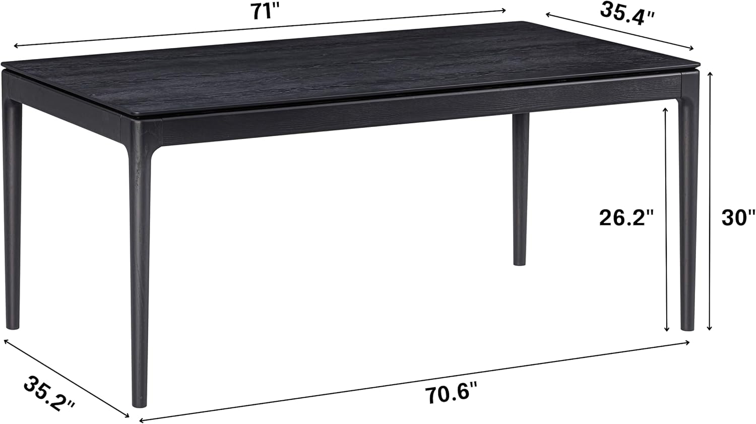 NTC Mingle 71 Inch Modern Design, Rectangular Dinner Table for Dining Room, Living Room Furniture, Effortless Assembly, Burnt Black