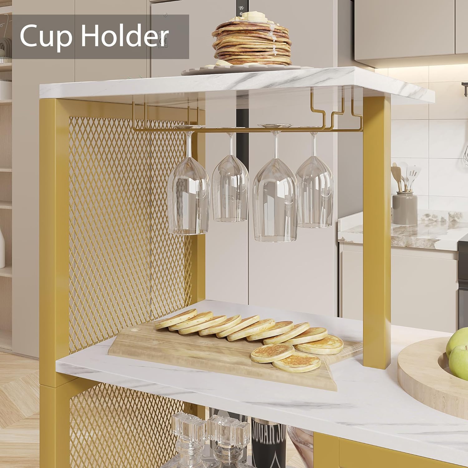 - 🍷【Ample Storage & Space-Saving Design】Maximize storage in tight spaces with our dining table set. Featuring a spacious tabletop and 4 open shelves on the left side for cutlery, glasses, snacks, and wine. The bottom has 2-tier wine racks, and the top offers cup holders for 4 regular-sized glasses. Chairs neatly tuck under, making it perfect for small spaces like condos, kitchens, studios, or apartments.