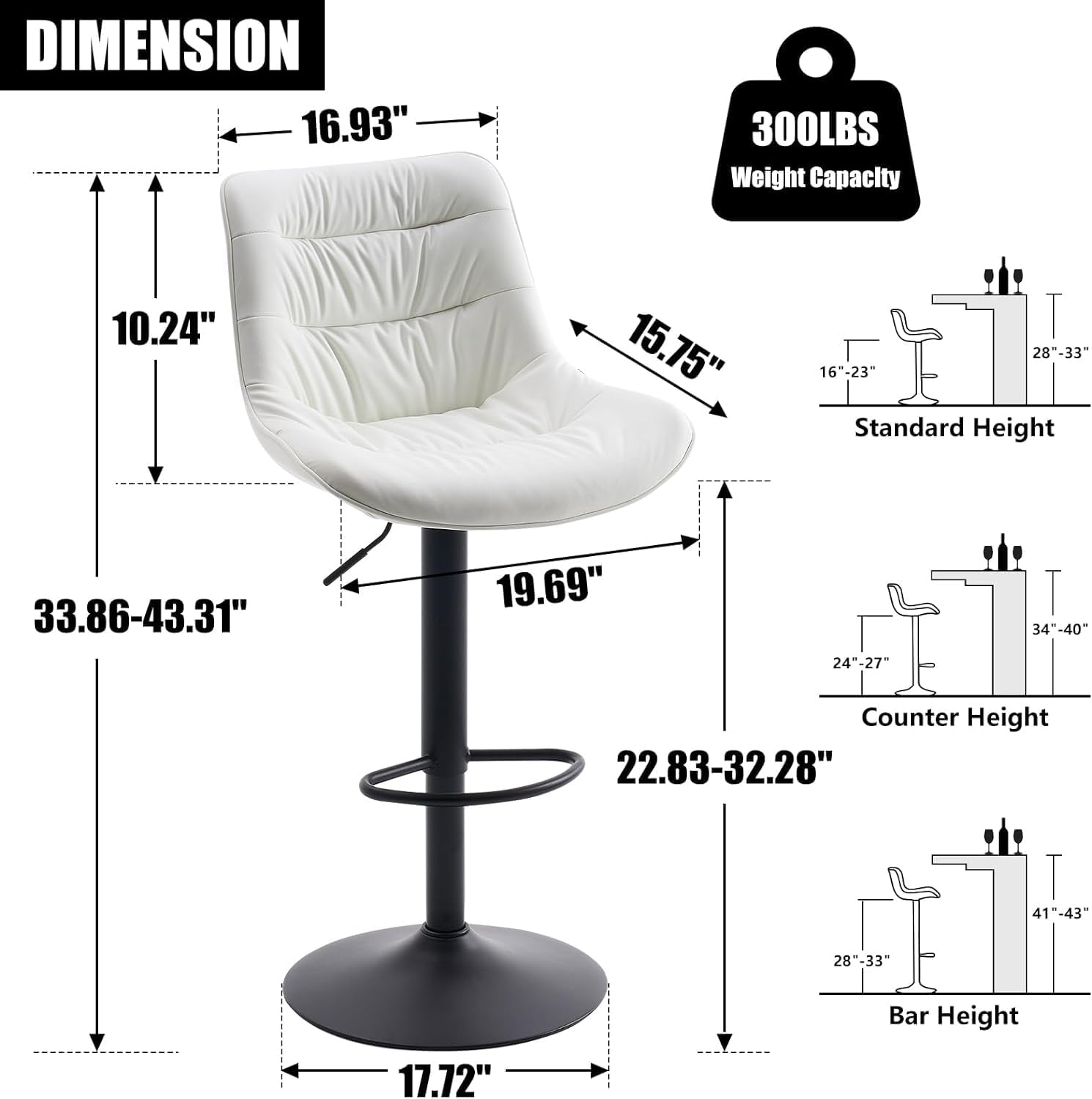 - 【Durability】The Metal bar stool Reinforced base supports up to 300 lbs. Premium waterproof PU leather is tested over double rubs , and the powerful coating process prevents scratches, ensuring they stay soft and look new for a long time