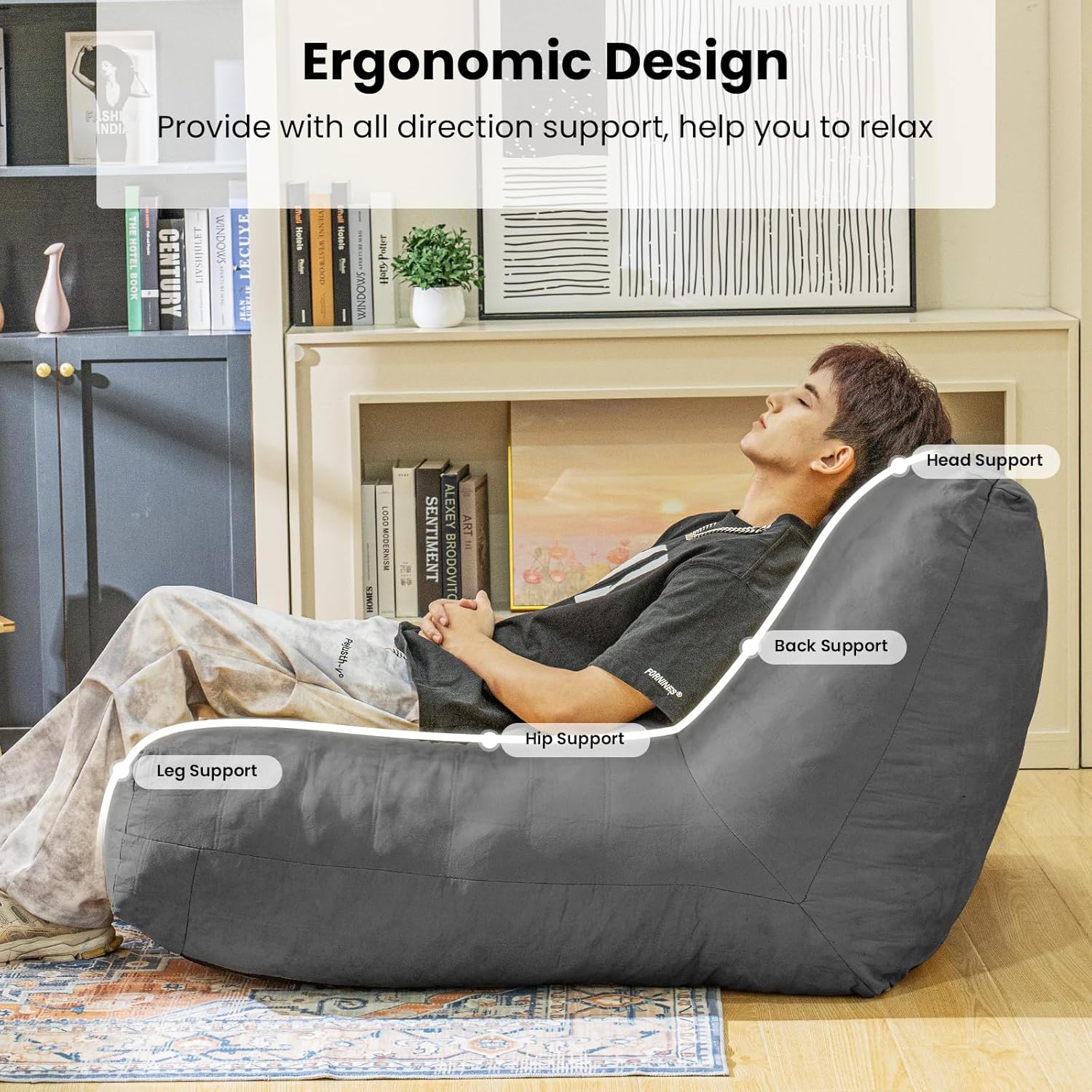 - Ergonomic Design: This bean bag couch is designed with an ergonomic curve that fits to the human body shape. The design fits the curve of the waist, which can support the back well. Whether you're lounging, gaming, reading books, or enjoying a cozy nap, this sofa chair provides an exceptional seating experience.