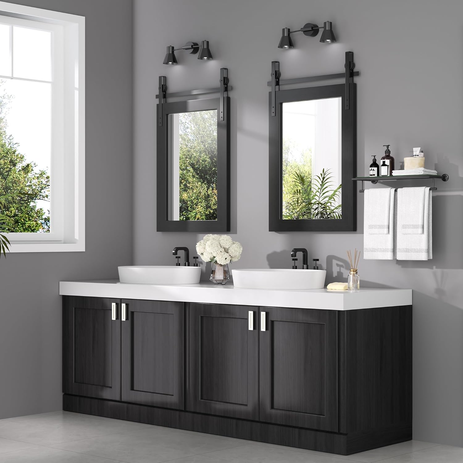 Hasipu Farmhouse Bathroom Mirror, 18"x26" Rustic Wood Framed Wall Mounted Mirror, Black Vintage Vanity Mirror Barn Door Style Decrative Mirrors