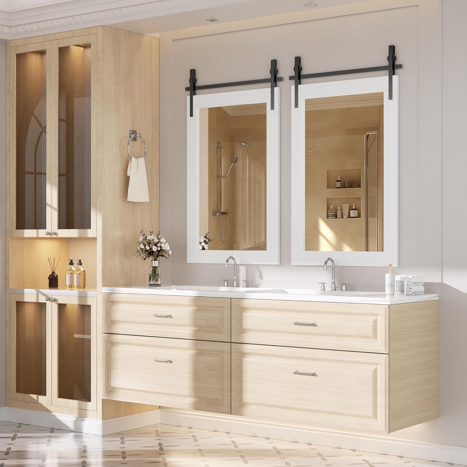 Hasipu Farmhouse Bathroom Mirror, 24"x36" Rustic Wood Framed Wall Mounted Mirror, White Vintage Vanity Mirror Barn Door Style Decrative Mirrors