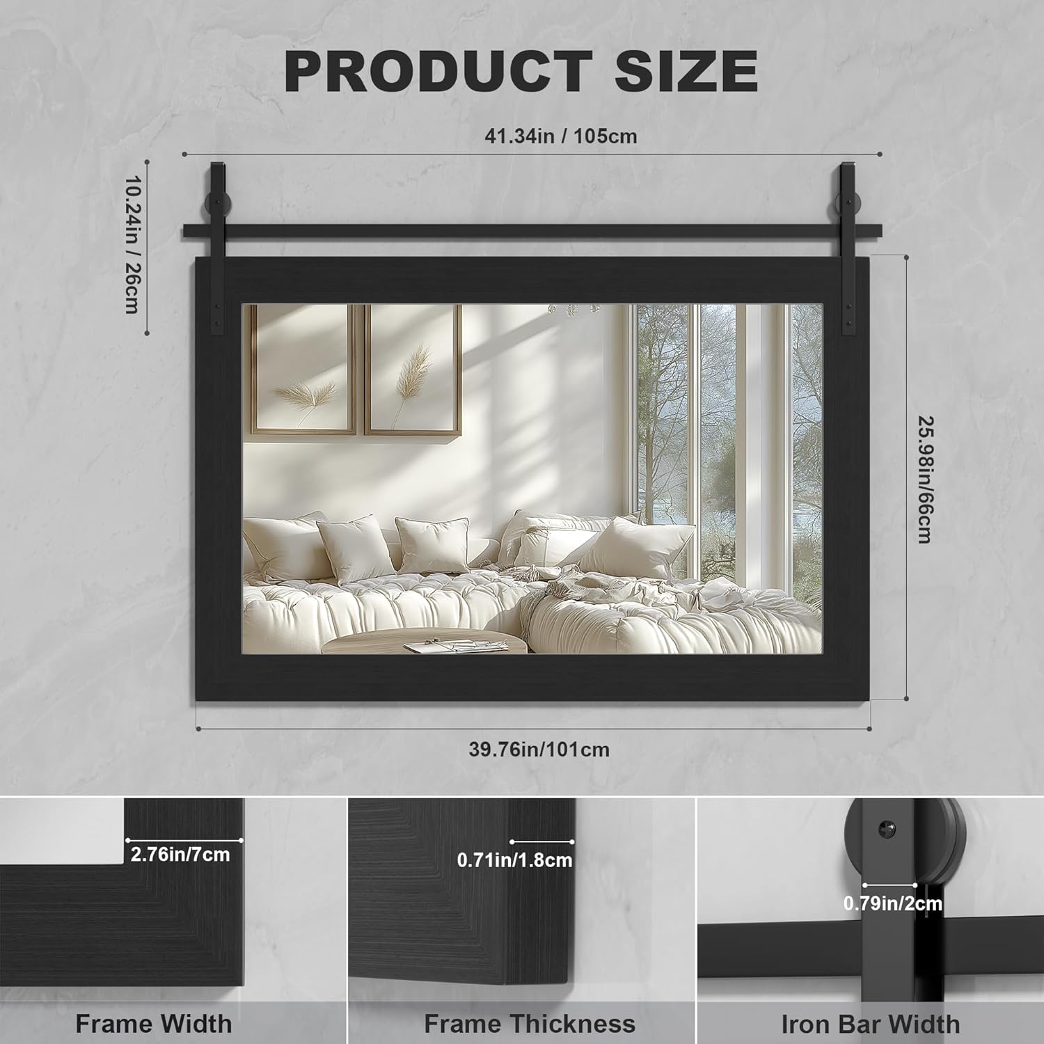 Hasipu Farmhouse Bathroom Mirror, 40"x26" Rustic Wood Framed Wall Mounted Mirror, Black Vintage Vanity Mirror Barn Door Style Decrative Mirrors