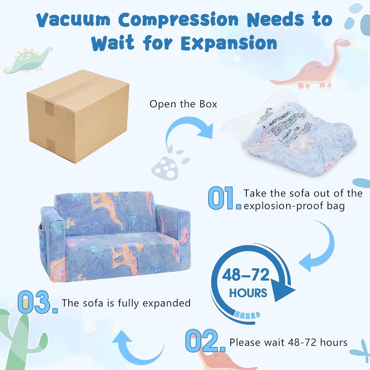 - Warm reminder:The toddler sofa is vacuum compressed for transportation. Please wait patiently for a while,the folding sofa will fully return to its original shape