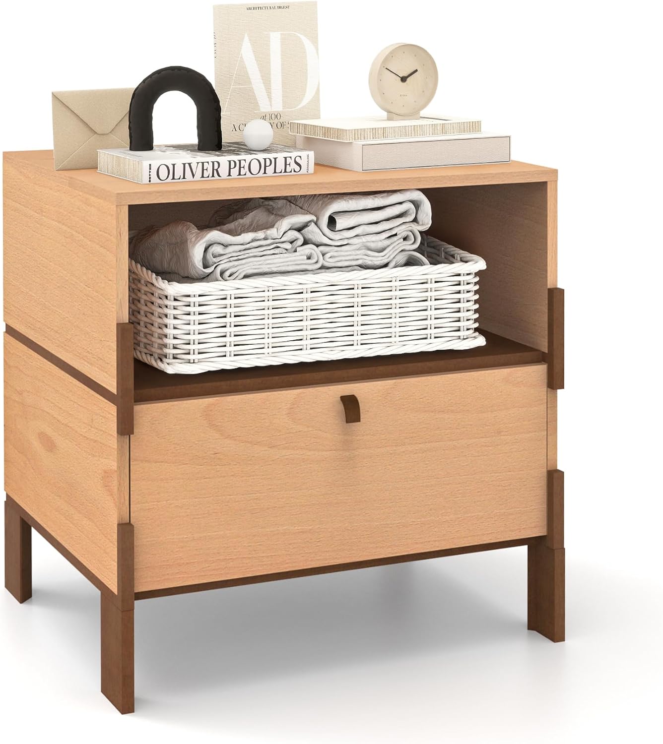 SBS-AL-21-1 Sebastack Night Stand, Customizable 2 Drawers Bedside Table, End Table, Side Table for Bedroom, Dormitory, Mid-Century Style Wood Chest of Furnitures, Beech Color