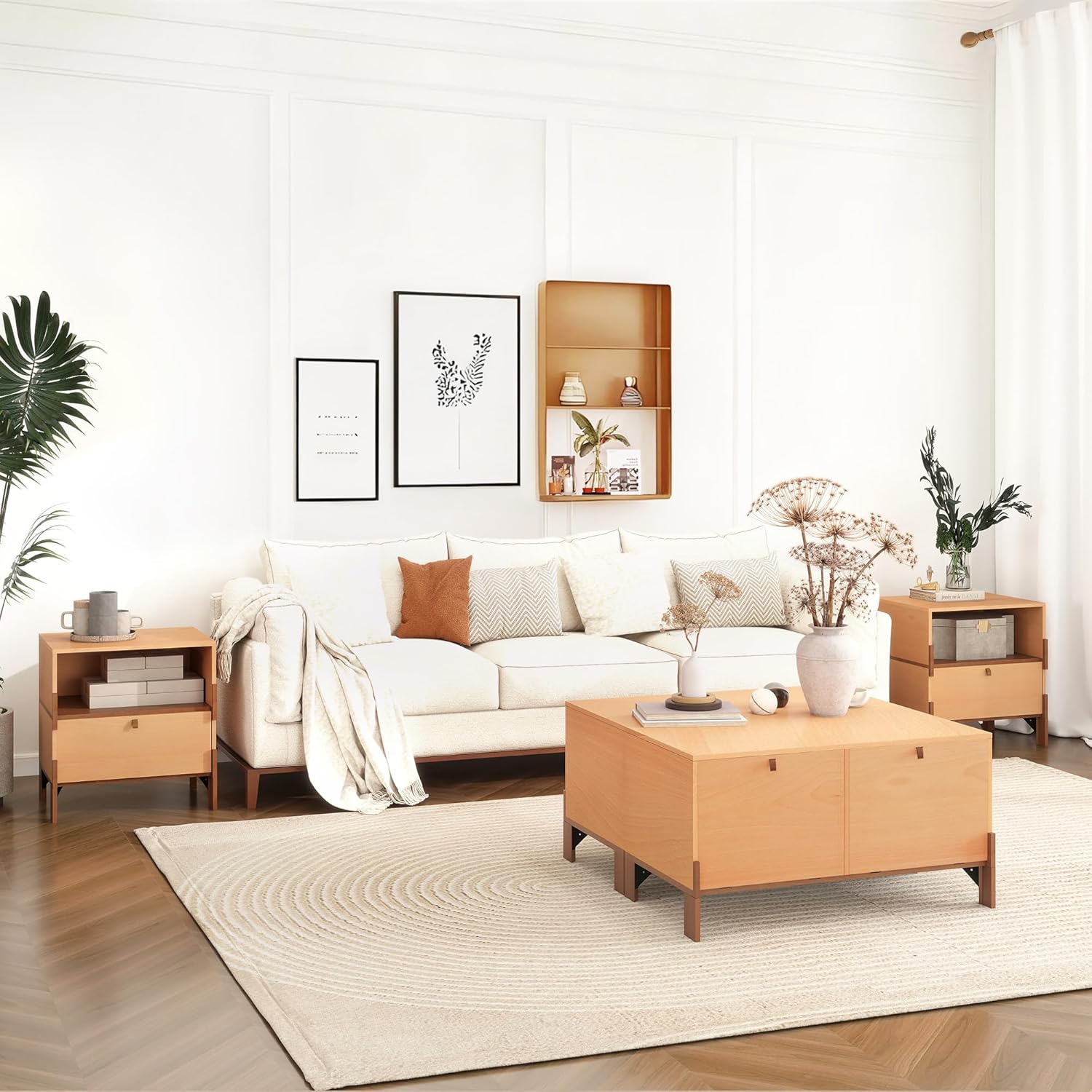 - 【Specification】Dimensions: W18.9xD14.96xH19.98 inches (W48xD38xH50.75 cm); Color: Ivory Beech